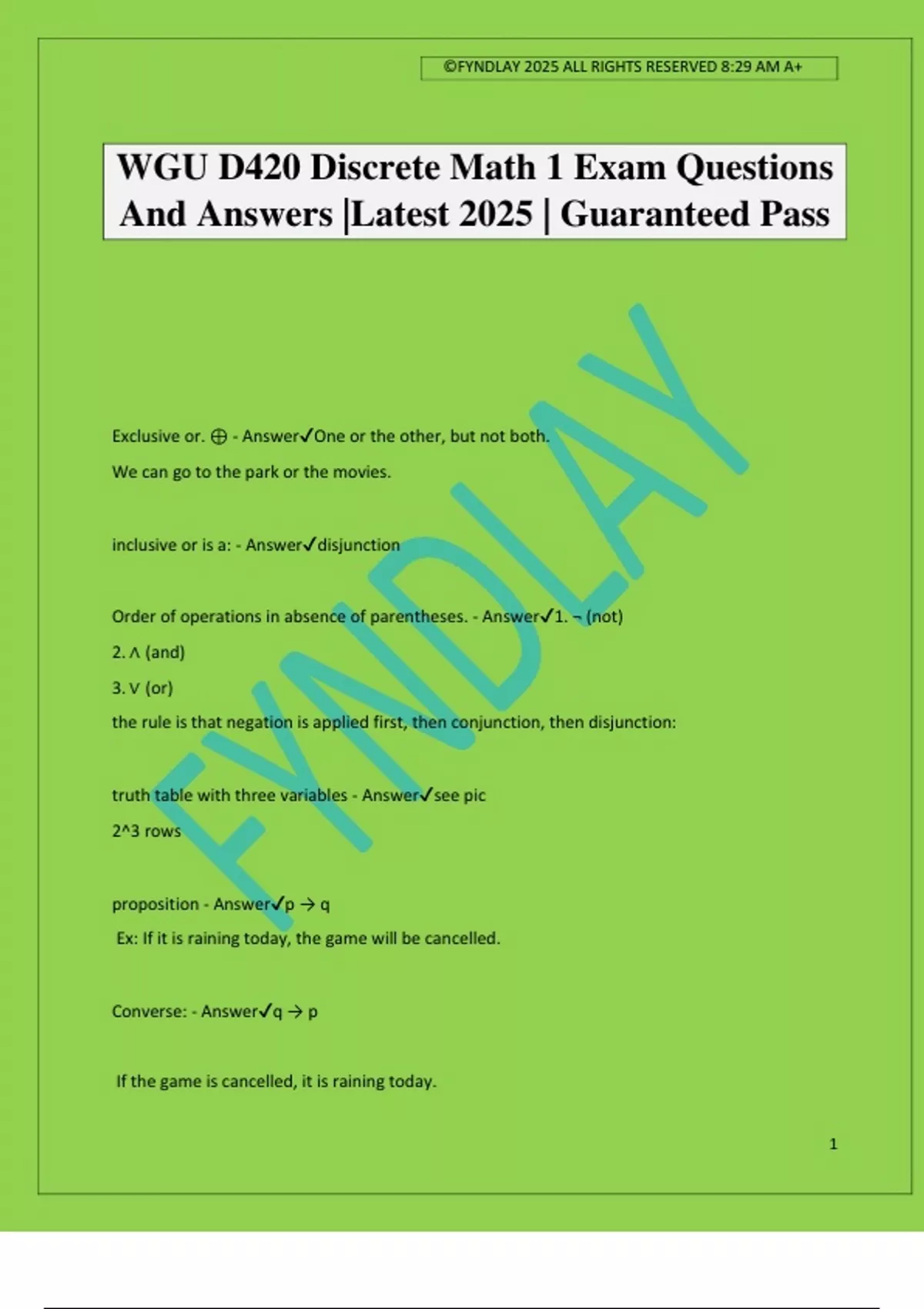 WGU D420 Discrete Math 1 Exam Questions