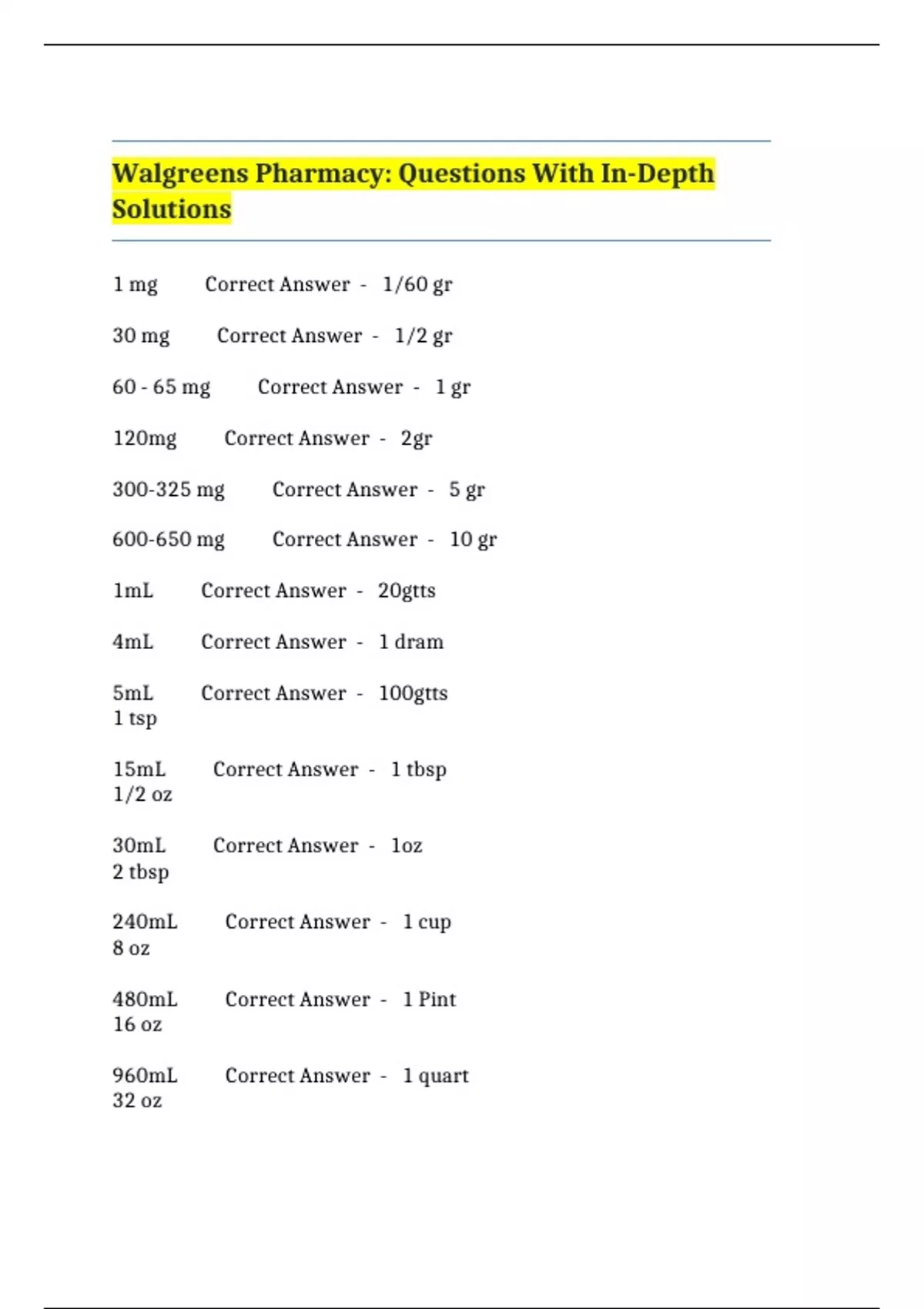 300-325 mg Correct Answer - 5 gr