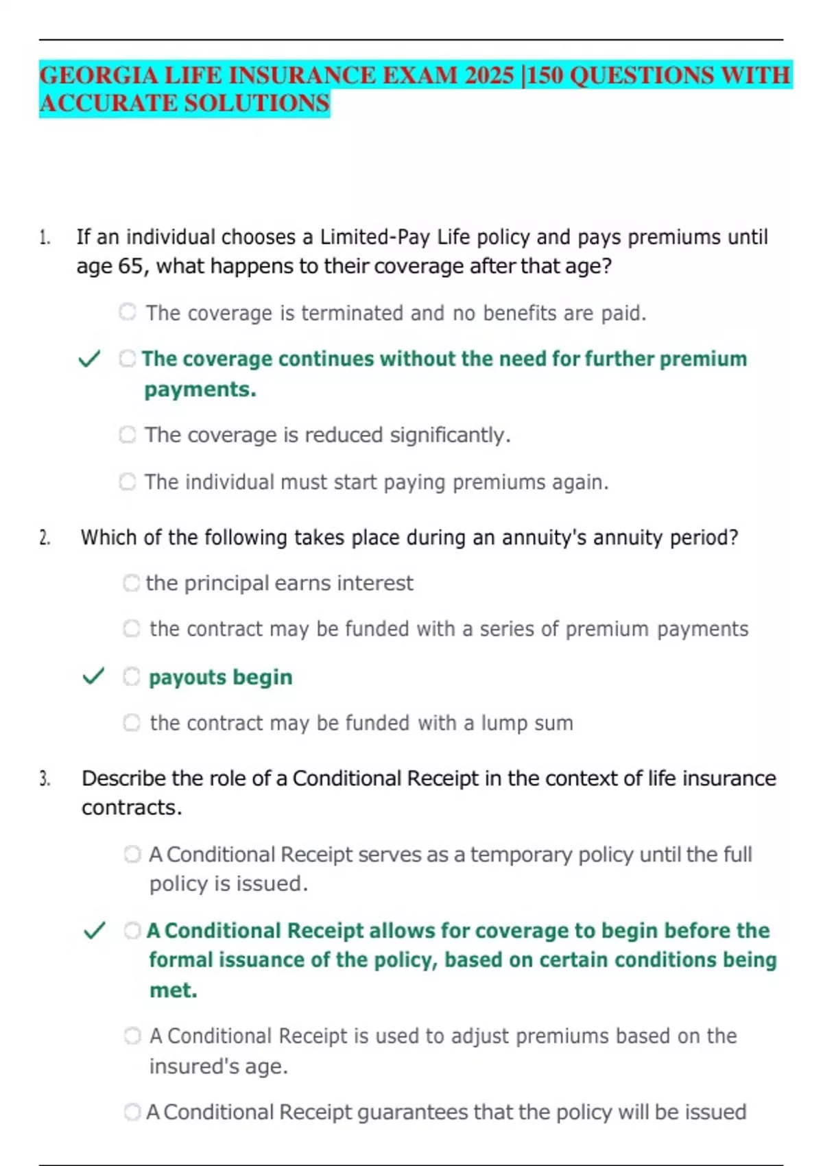 1. If an individual chooses a Limited-Pay Life policy and pays premiums until