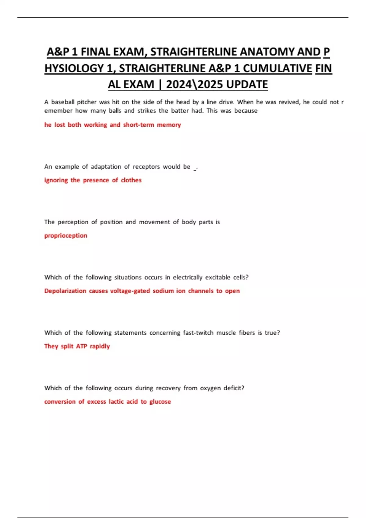 HYSIOLOGY 1, STRAIGHTERLINE A&P 1 CUMULATIVE FIN