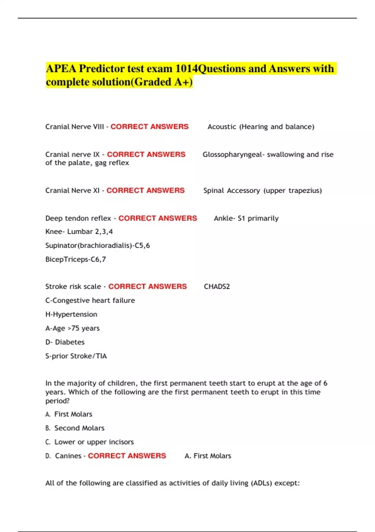 Cranial Nerve XI - CORRECT ANSWERS Spinal Accessory (upper trapezius)