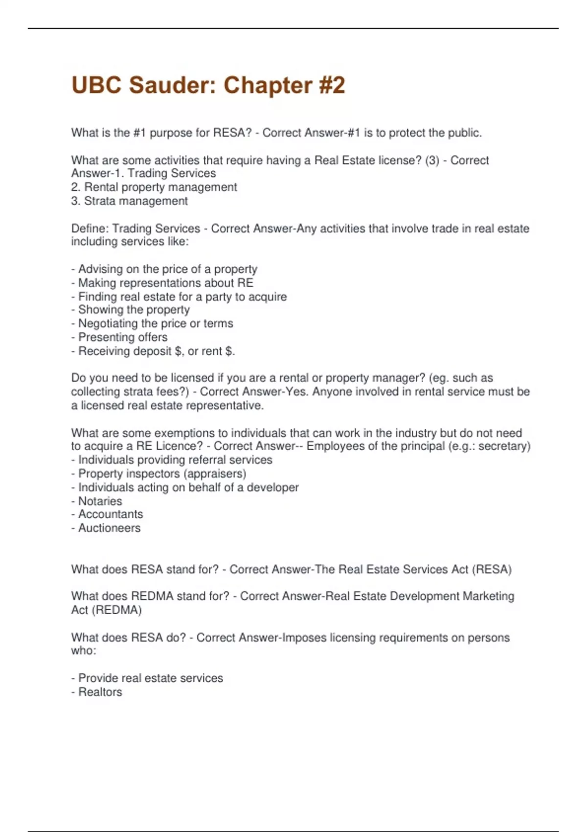 What does RESA stand for? - Correct Answer-The Real Estate Services Act (RESA)
