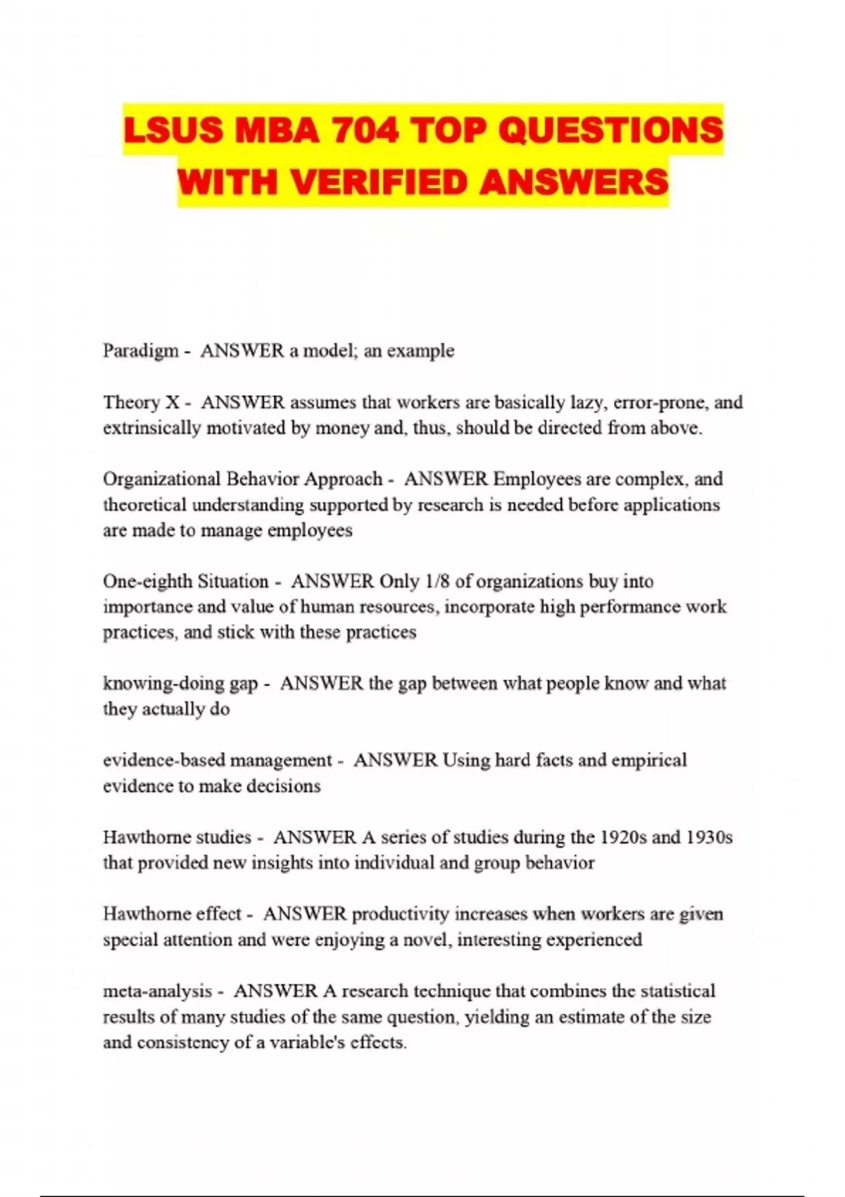 LSUS MBA 704 TOP QUESTIONS WITH VERIFIED ANSWERS