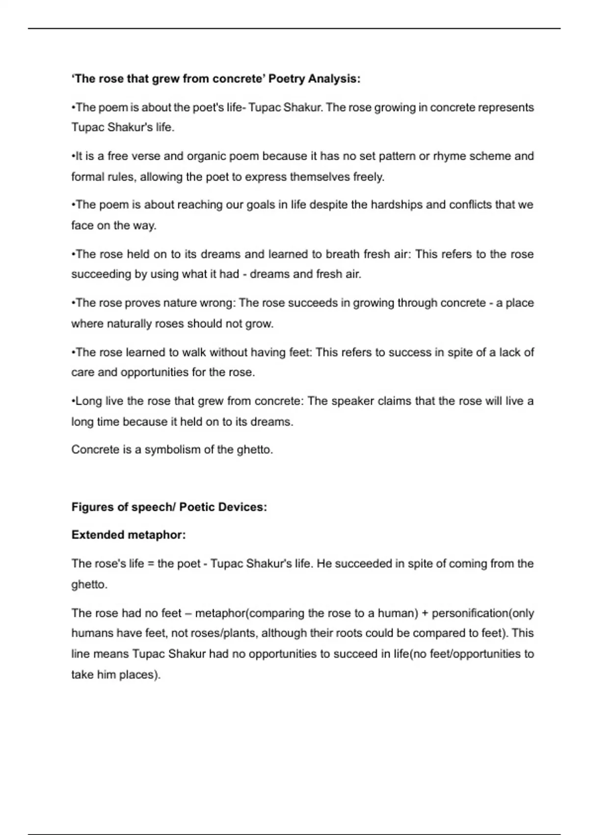 •The poem is about the poet's life- Tupac Shakur. The rose growing in concrete represents