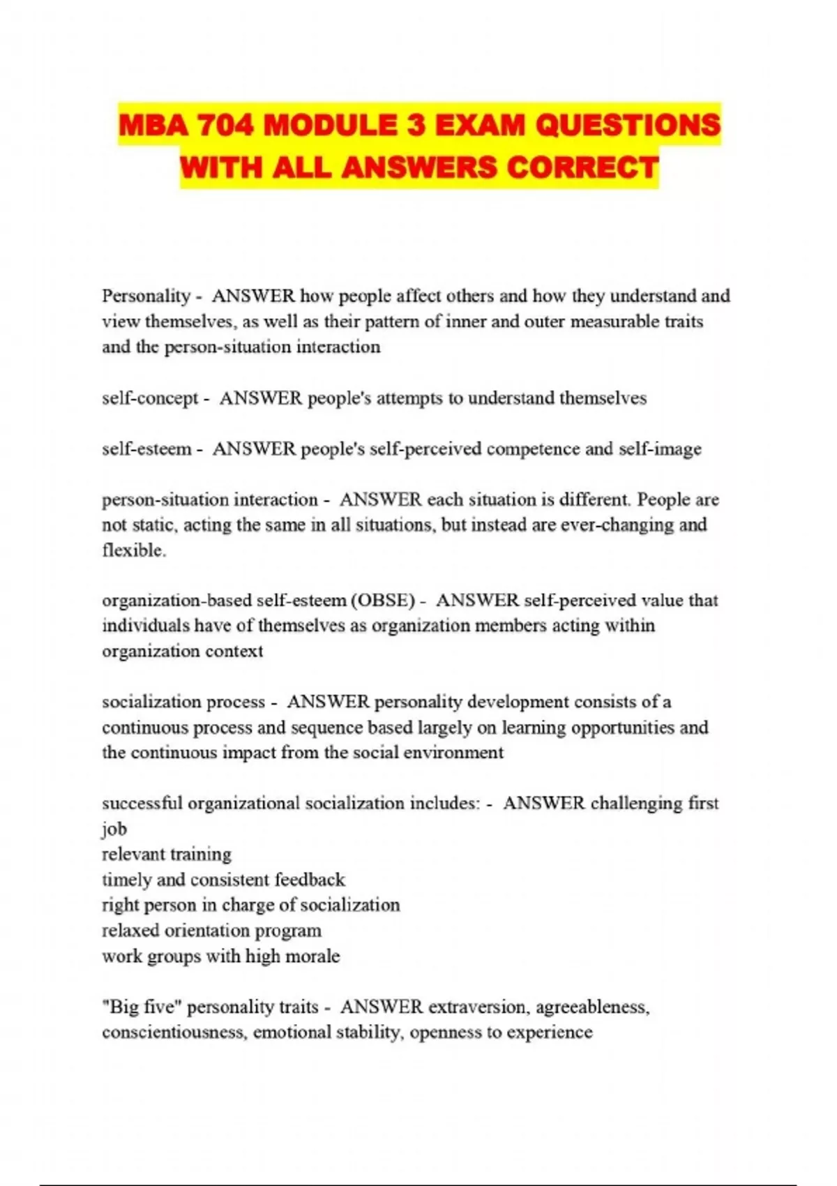 MBA 704 MODULE 3 EXAM QUESTIONS WITH ALL ANSWERS CORRECT....