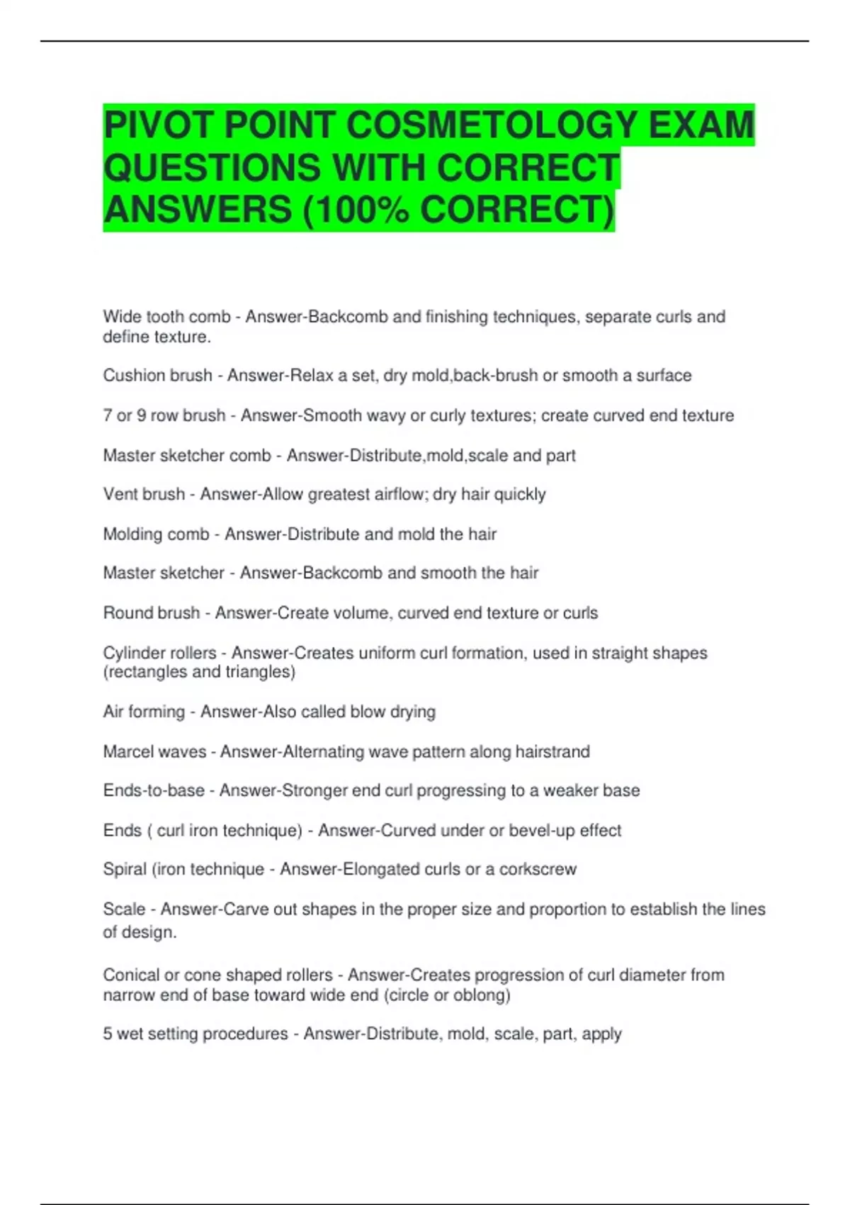 PIVOT POINT COSMETOLOGY EXAM