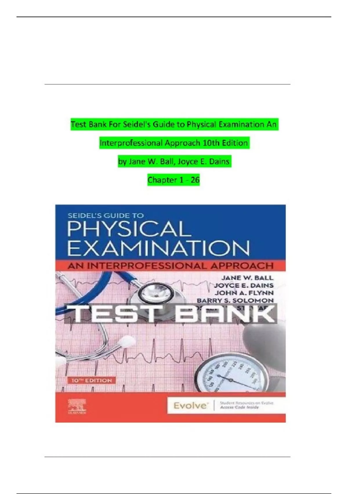TEST BANK For Seidel's Guide to Physical Examination An Interprofessional Approach 10th Edition by Jane W. Ball, Joyce E. Dains, Chapters 1 - 26 | Complete Newest Version TEST BANK For Seidel's Guide to Physical Examination An Interprofessional Approach 10th Edition by Jane W. Ball, Joyce E. Dains, Chapters 1 - 26 | Complete Newest Version