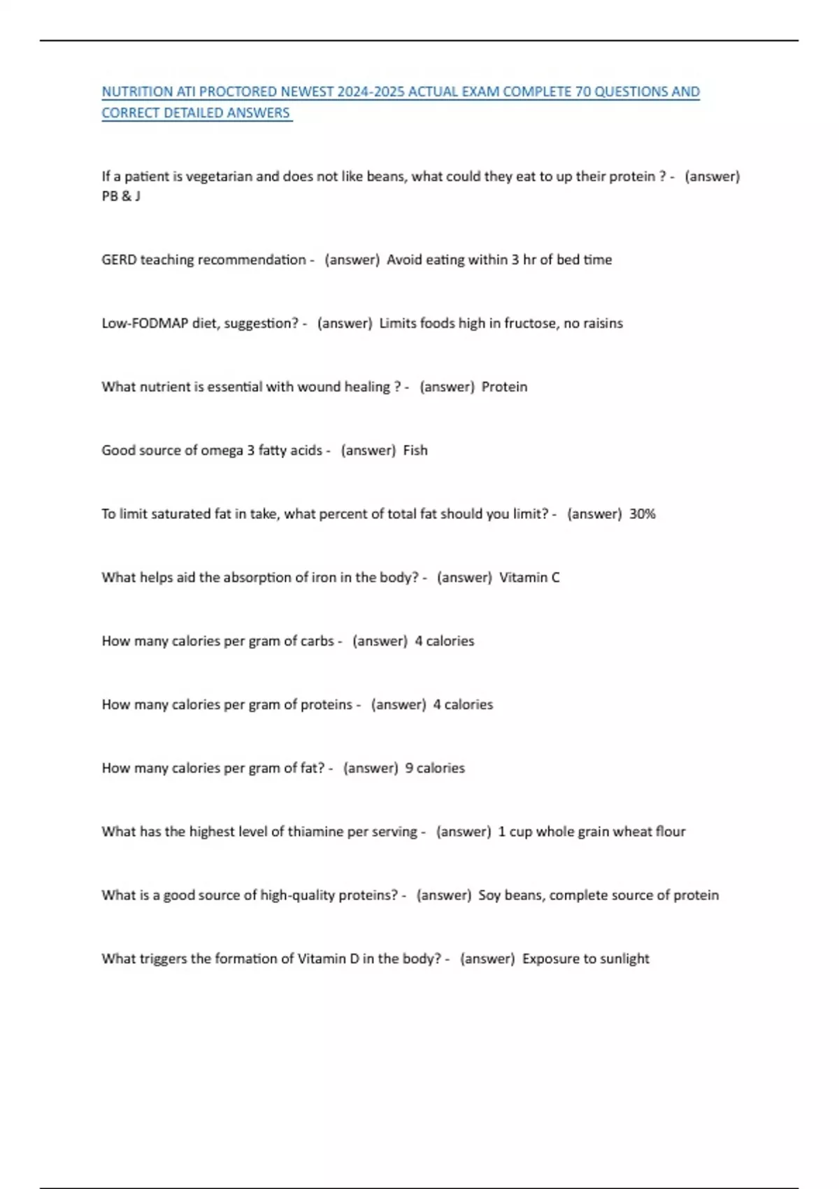 NUTRITION ATI PROCTORED NEWEST 2024-2025 ACTUAL EXAM COMPLETE 70 QUESTIONS AND