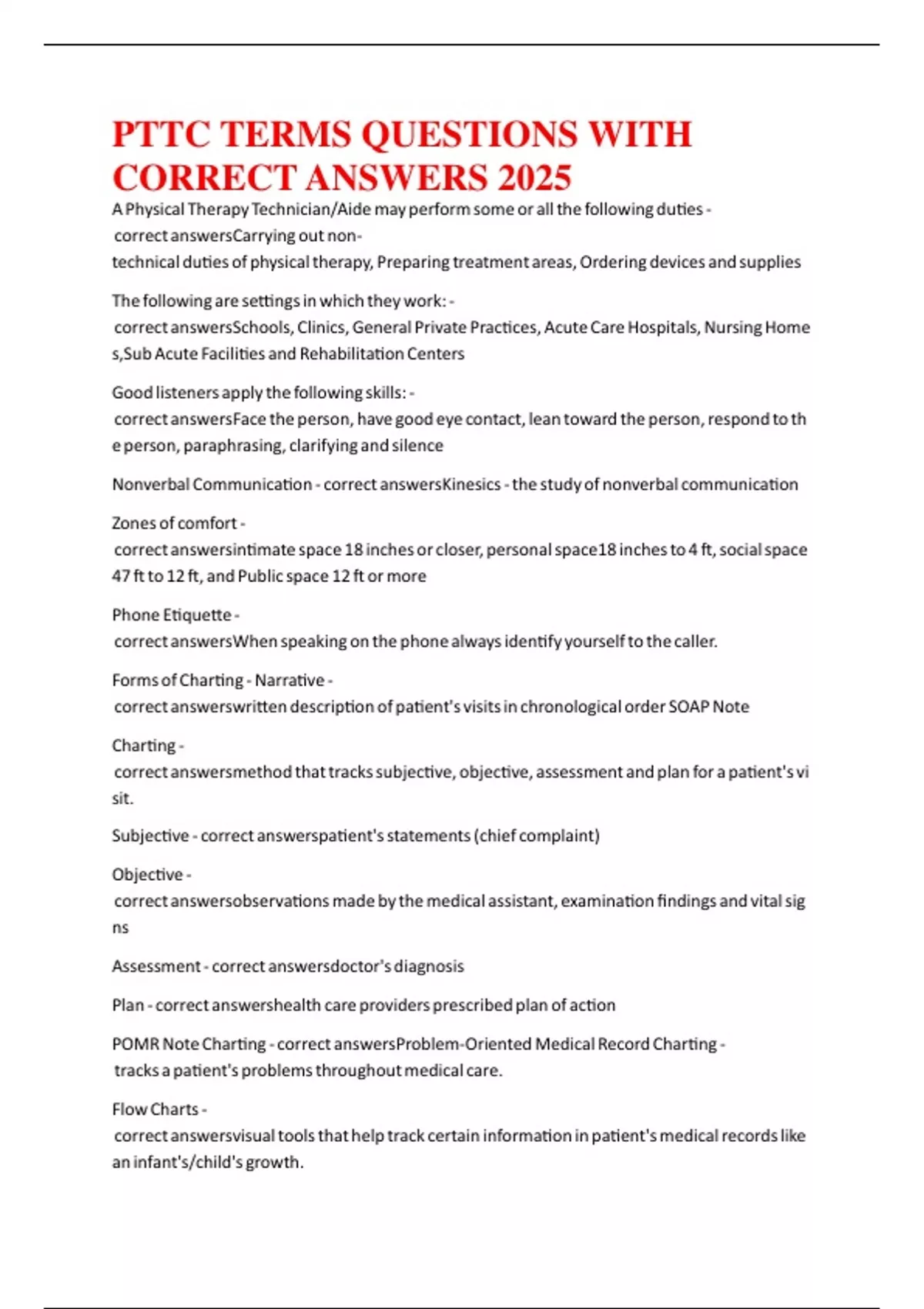 CORRECT ANSWERS 2025