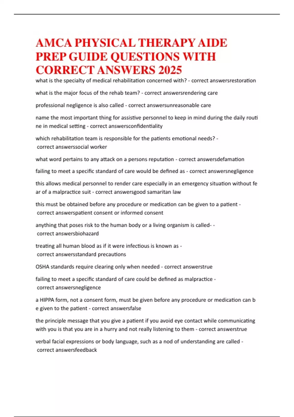 AMCA PHYSICAL THERAPY AIDE PREP GUIDE QUESTIONS WITH CORRECT ANSWERS 2025.