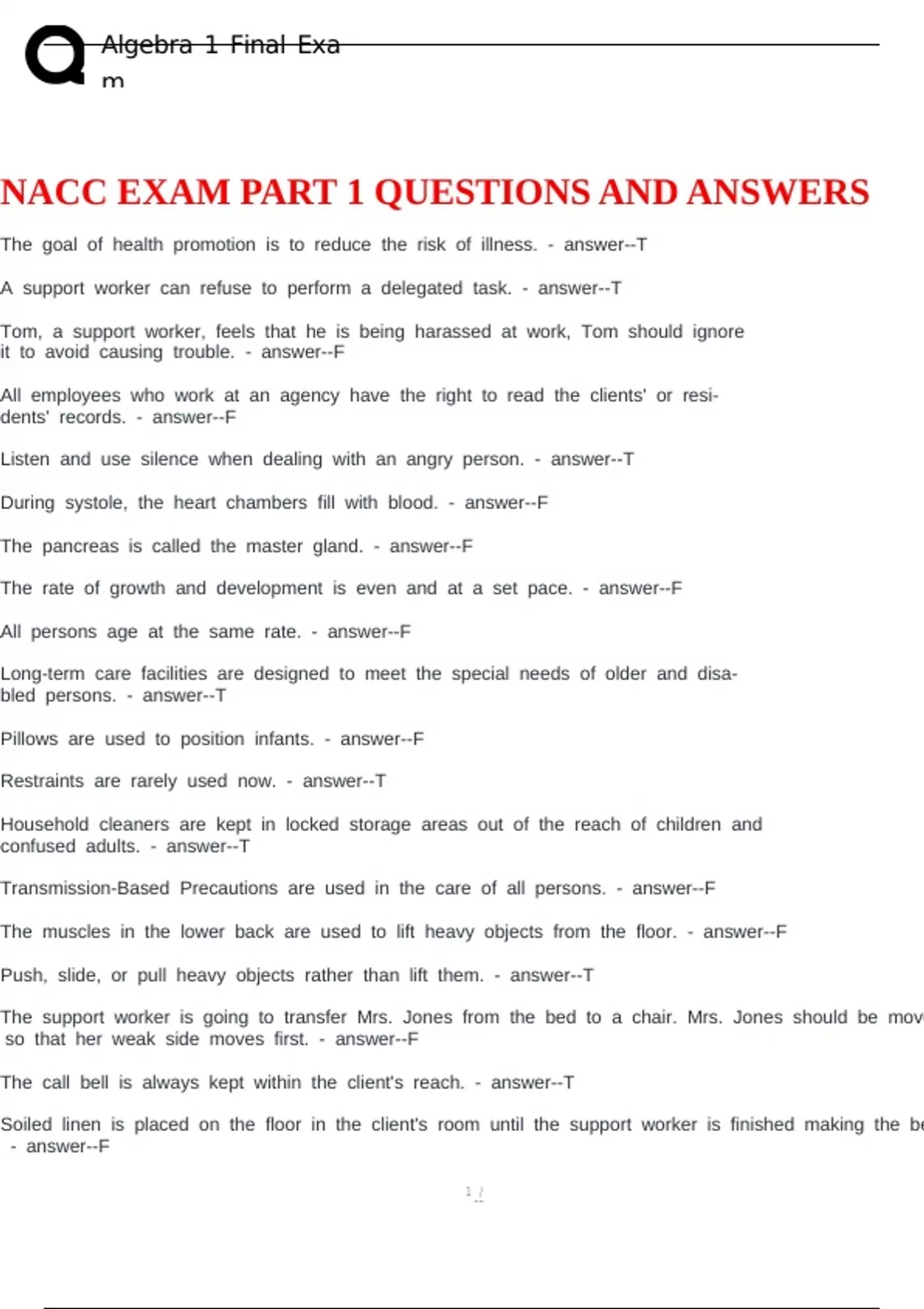 NACC EXAM PART 1 QUESTIONS AND ANSWERS