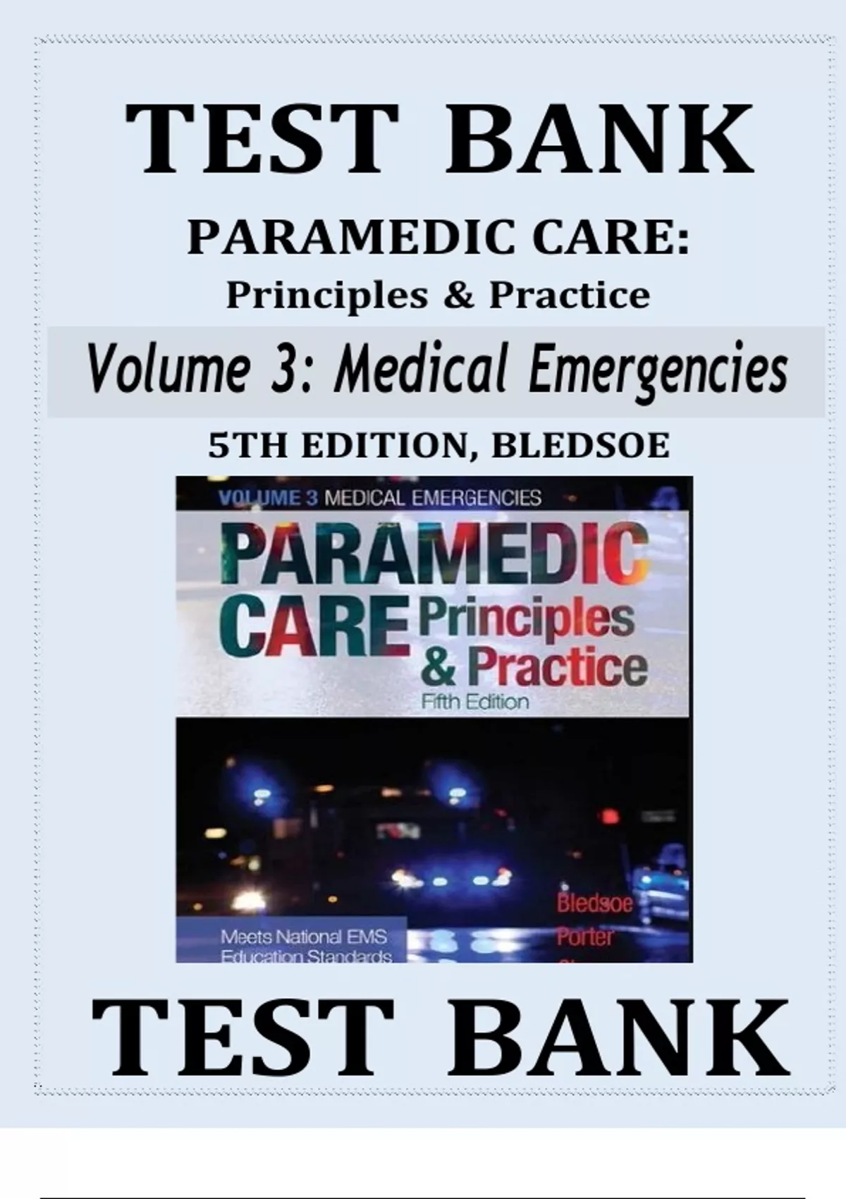TEST BANK PARAMEDIC CARE: Principles & Practice Volume 3: Medical Emergencies 5TH EDITION, BLEDSOE