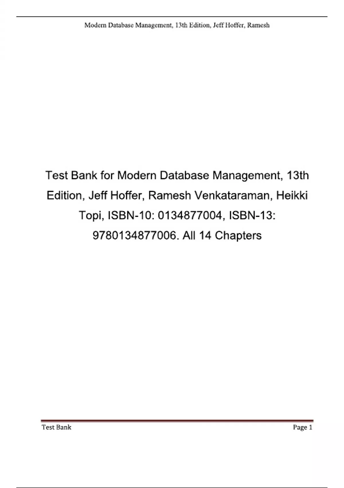 Test Bank for Modern Database Management 13th Edition Heikki Topi, Jeffrey A Hoffer, Ramesh Venkataraman.pdf