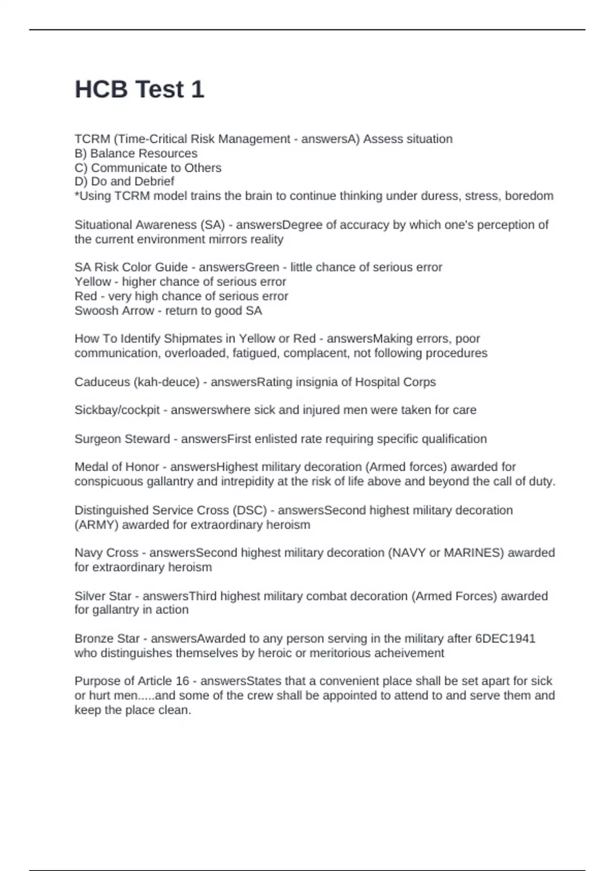 Navy Cross - answersSecond highest military decoration (NAVY or MARINES) awarded