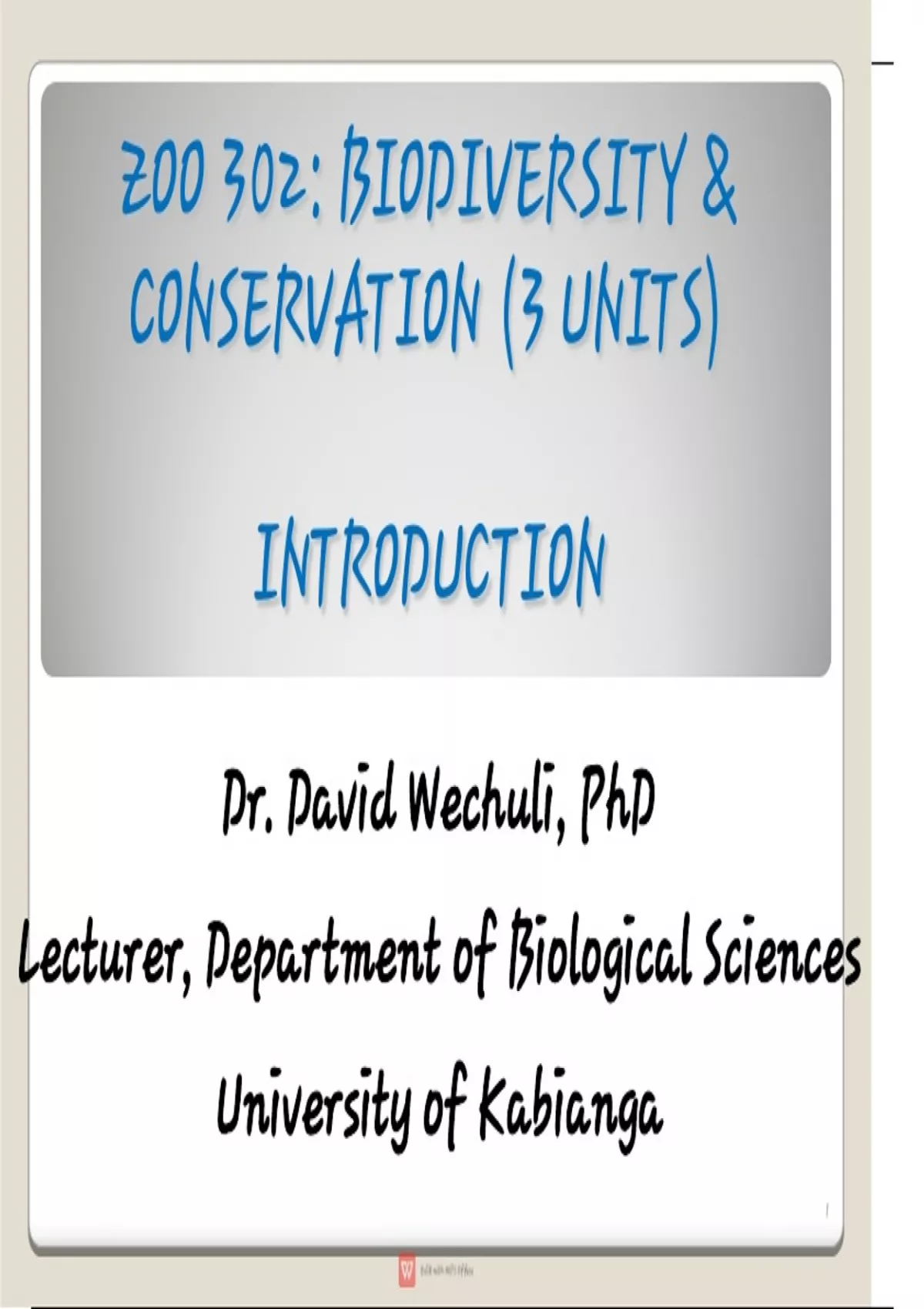 ZOO 302: BIODIVERSITY &