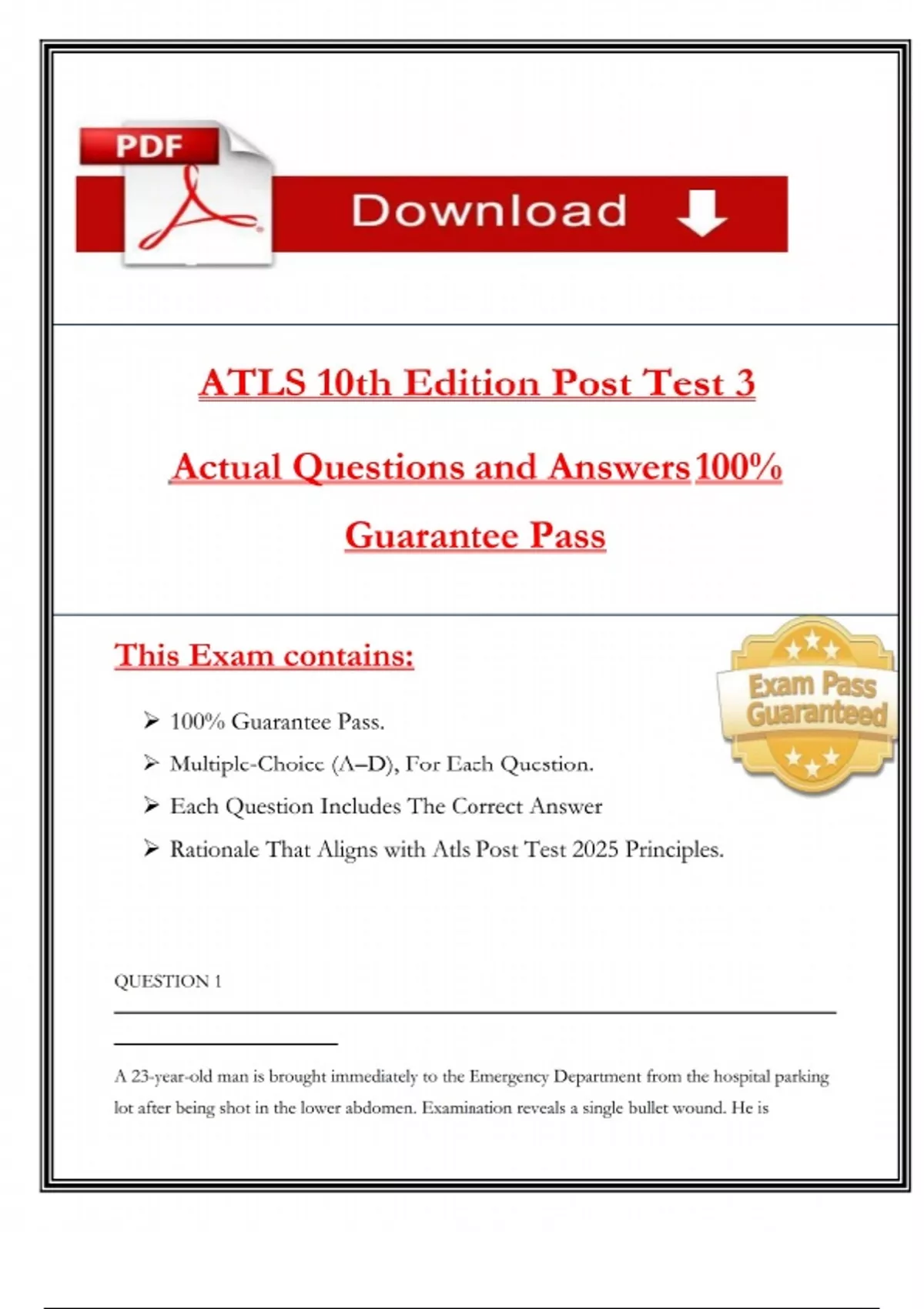 ATLS 10th Edition Post Test 3 Questions and Verified Answers (2025 / 2026) 100% Guarantee Pass