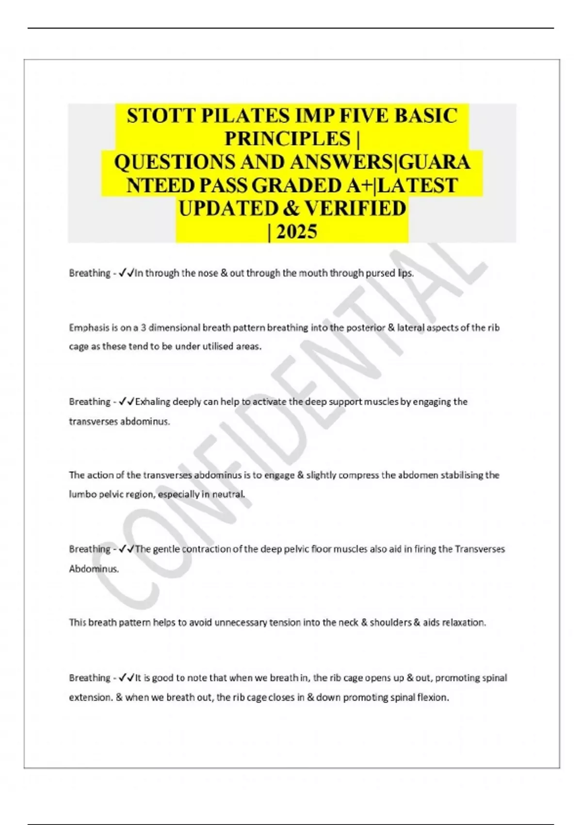 STOTT PILATES IMP FIVE BASIC PRINCIPLES | QUESTIONS AND ANSWERS|GUARA NTEED PASS GRADED A+|LATEST UPDATED & VERIFIED | 2025