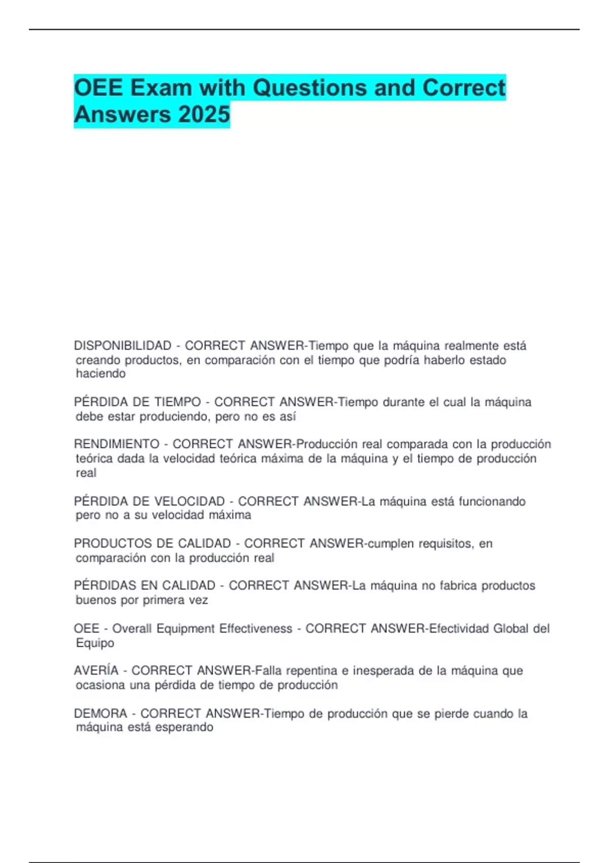 OEE Exam with Questions and Correct Answers 2025.
