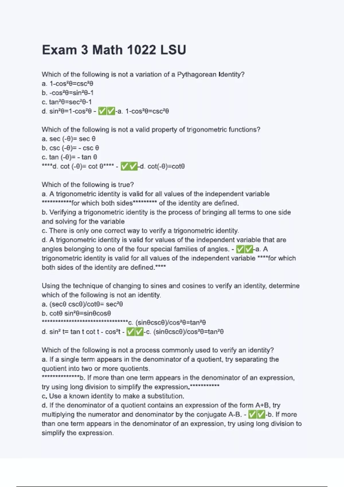 exam 3 math 1022 lsu questions and and answers