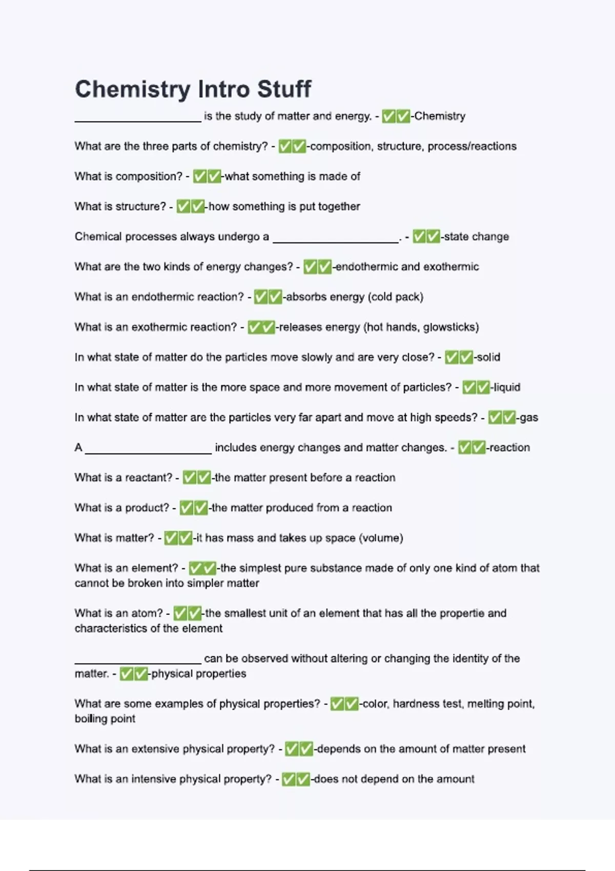 Chemistry Intro Stuff Questions and and answers