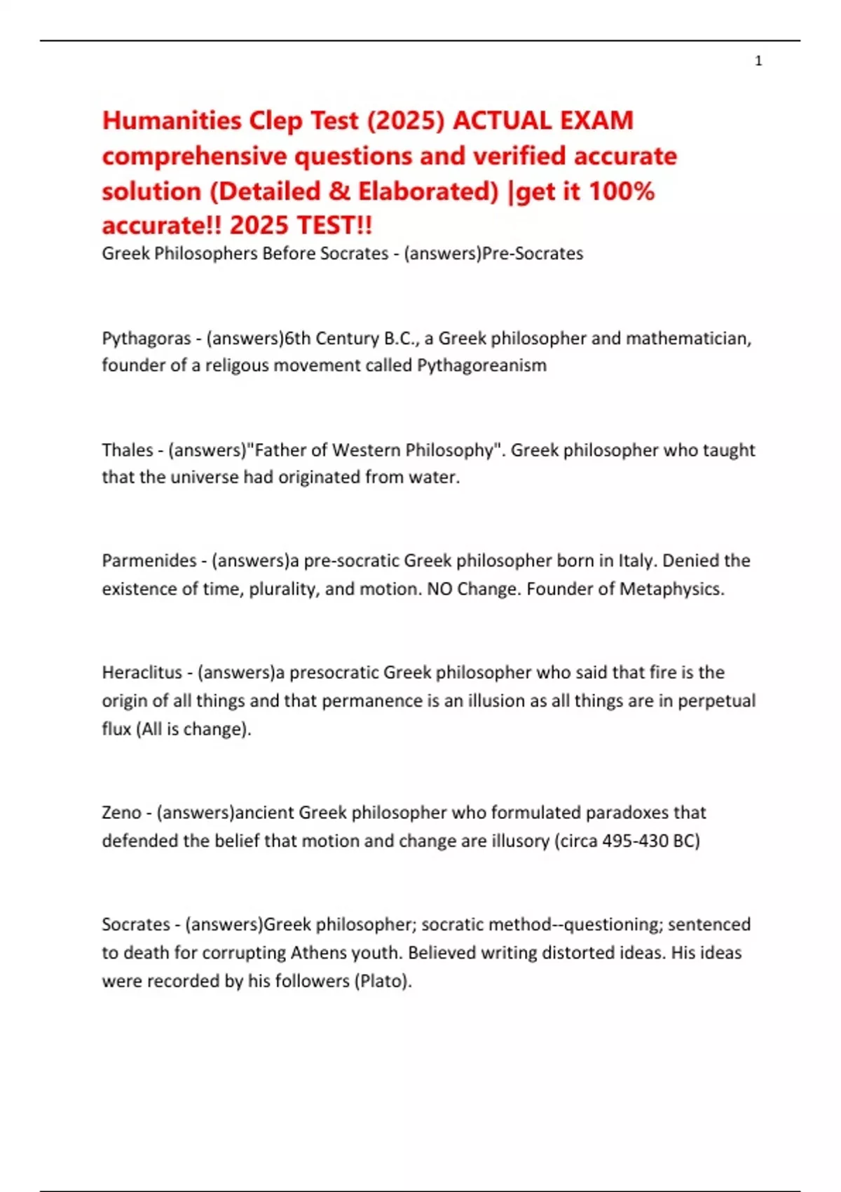 Greek Philosophers Before Socrates - (answers)Pre-Socrates