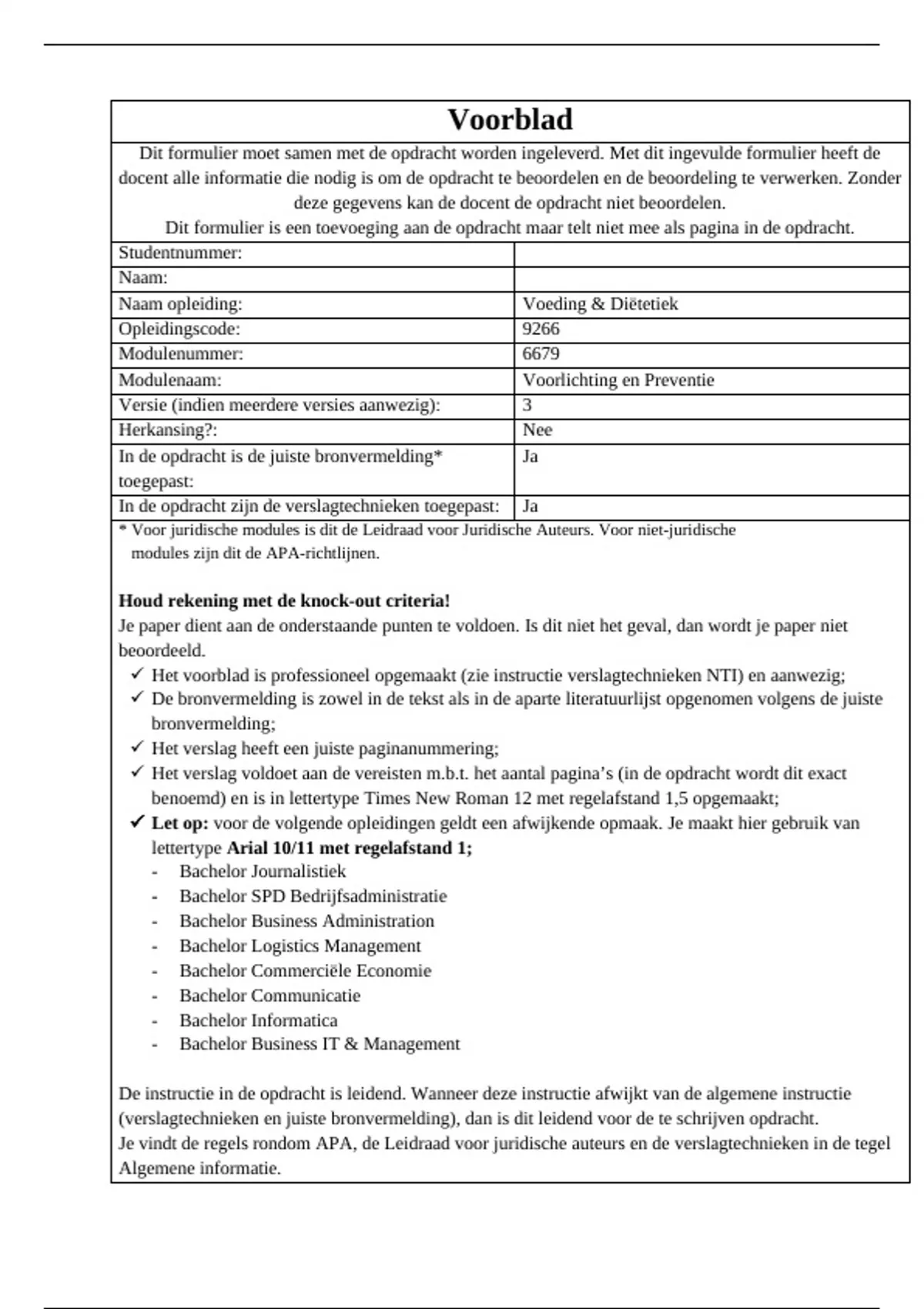 Let op: voor de volgende opleidingen geldt een afwijkende opmaak. Je maakt hier gebruik van