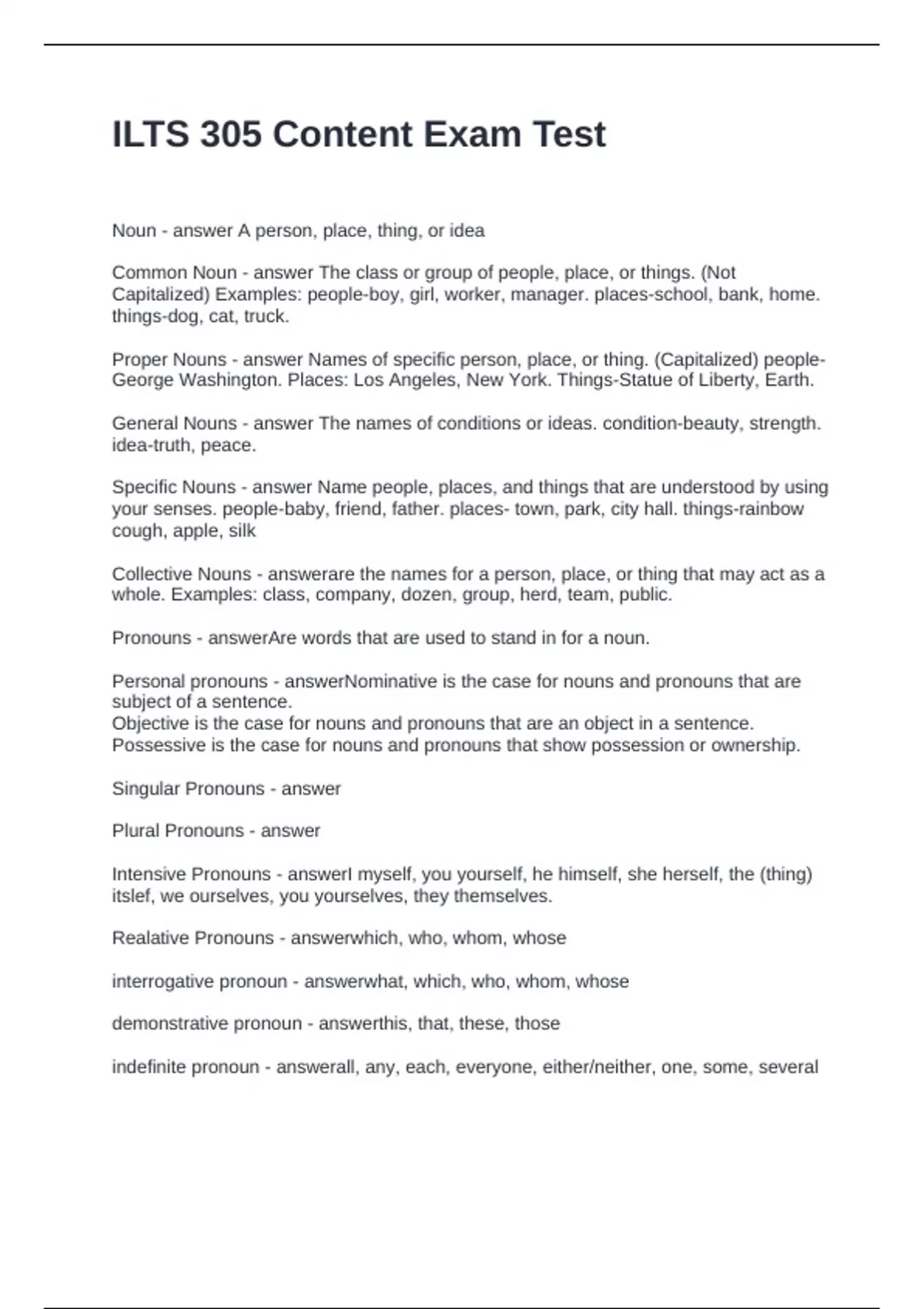 Noun - answer A person, place, thing, or idea