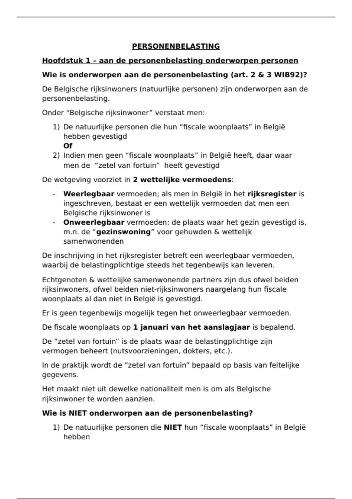 Hoofdstuk 1 – aan de personenbelasting onderworpen personen
