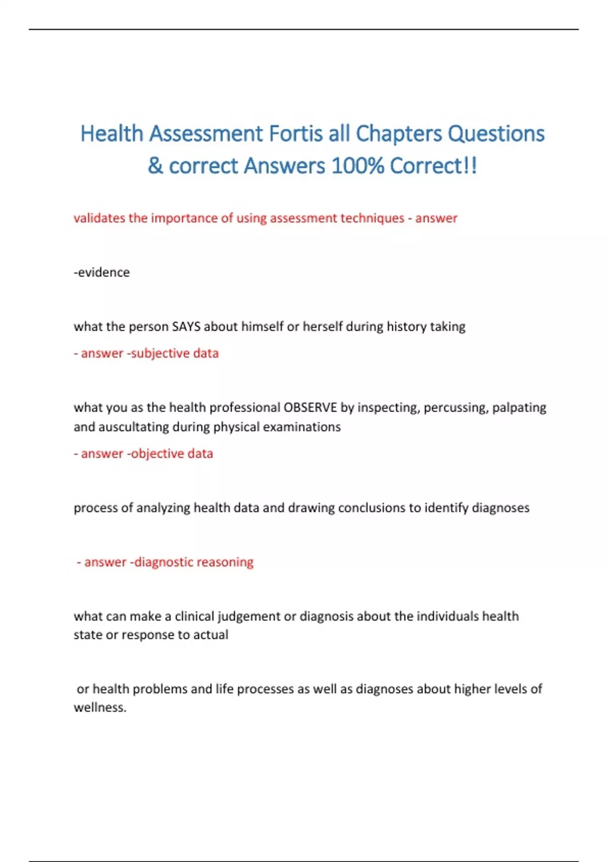 Health Assessment Fortis all Chapters Questions