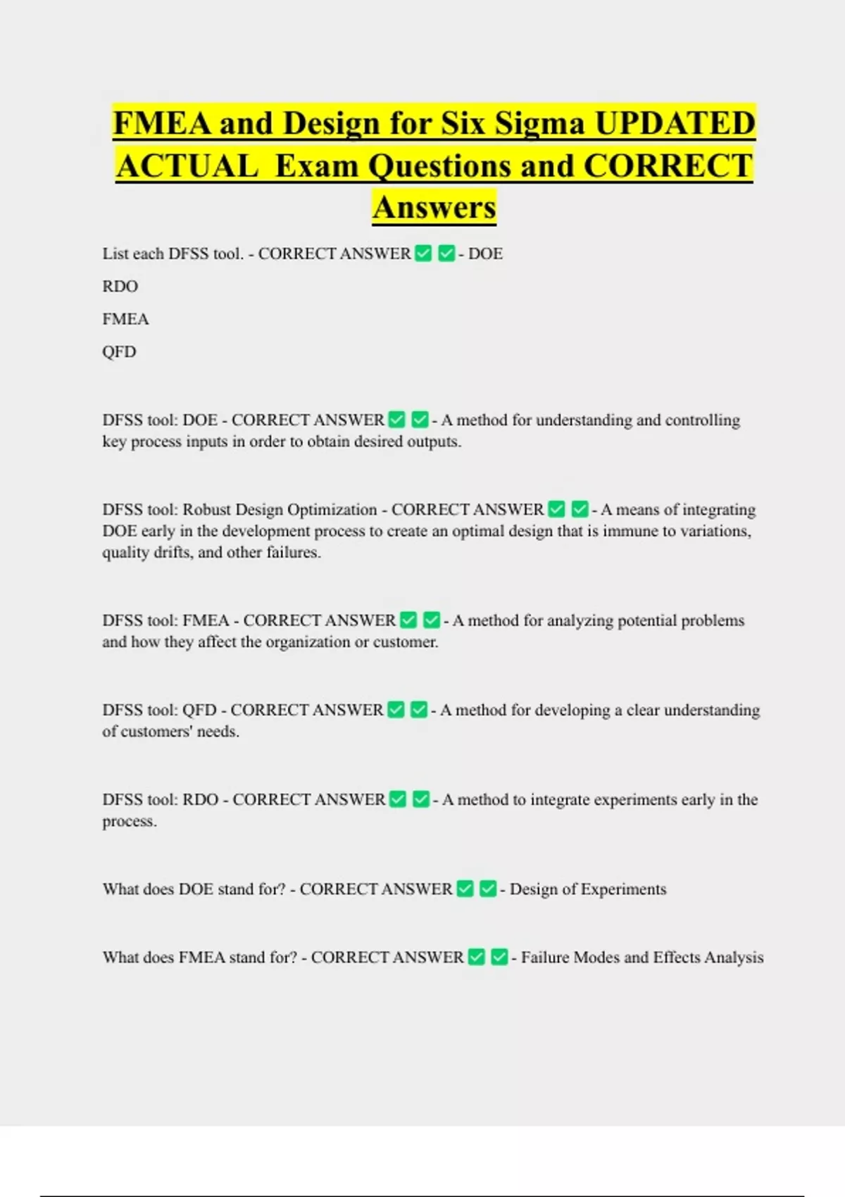 DFSS tool: FMEA - CORRECT ANSWER - A method for analyzing potential problems