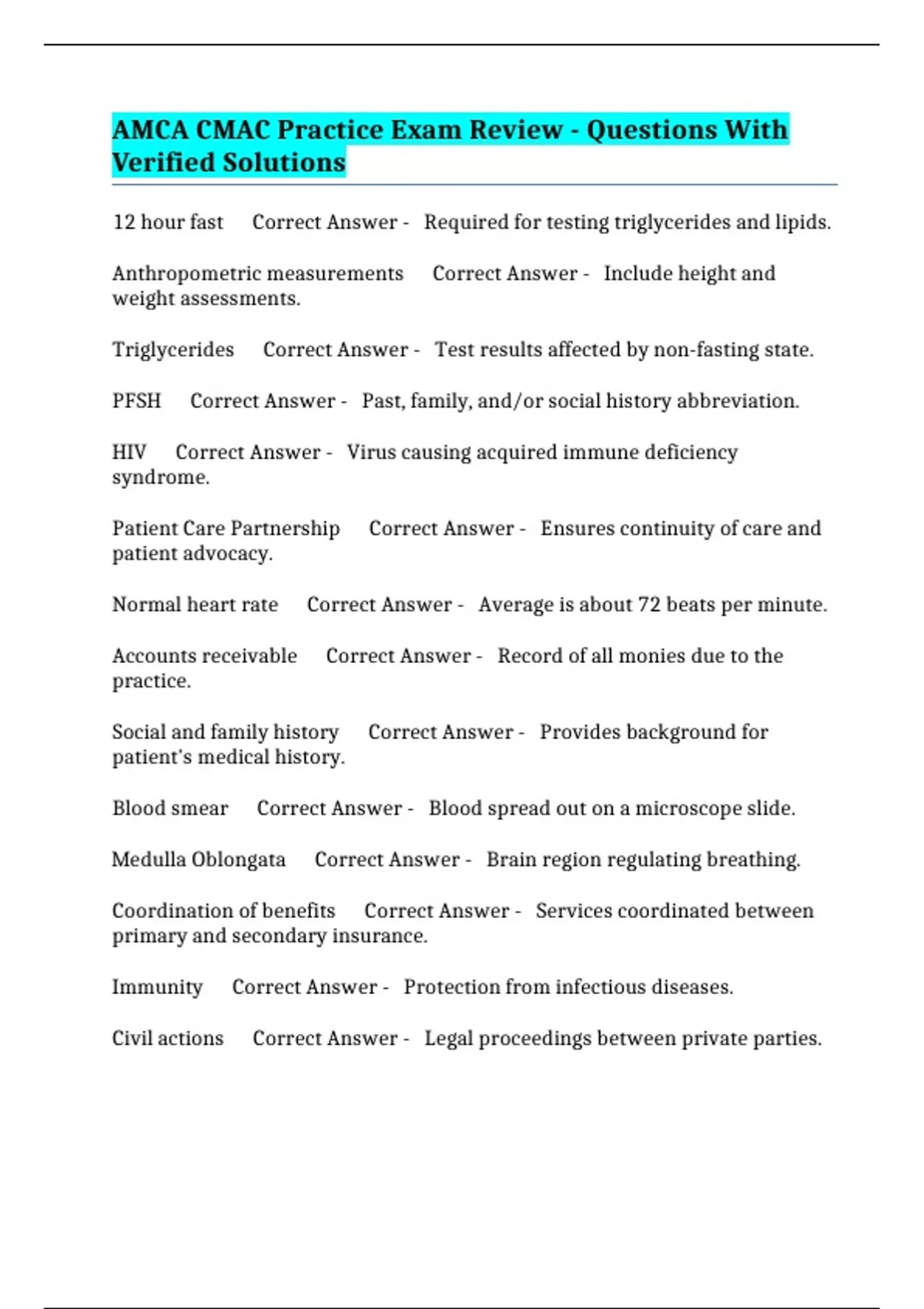AMCA CMAC Practice Exam Review - Questions With