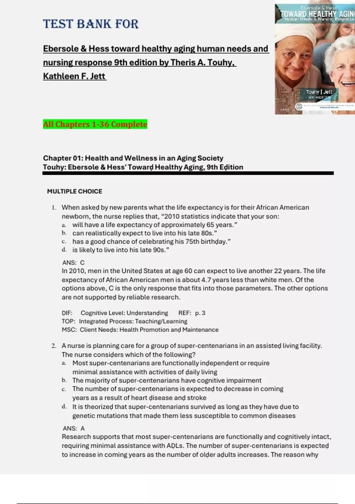 Chapter 01: Health and Wellness in an Aging Society