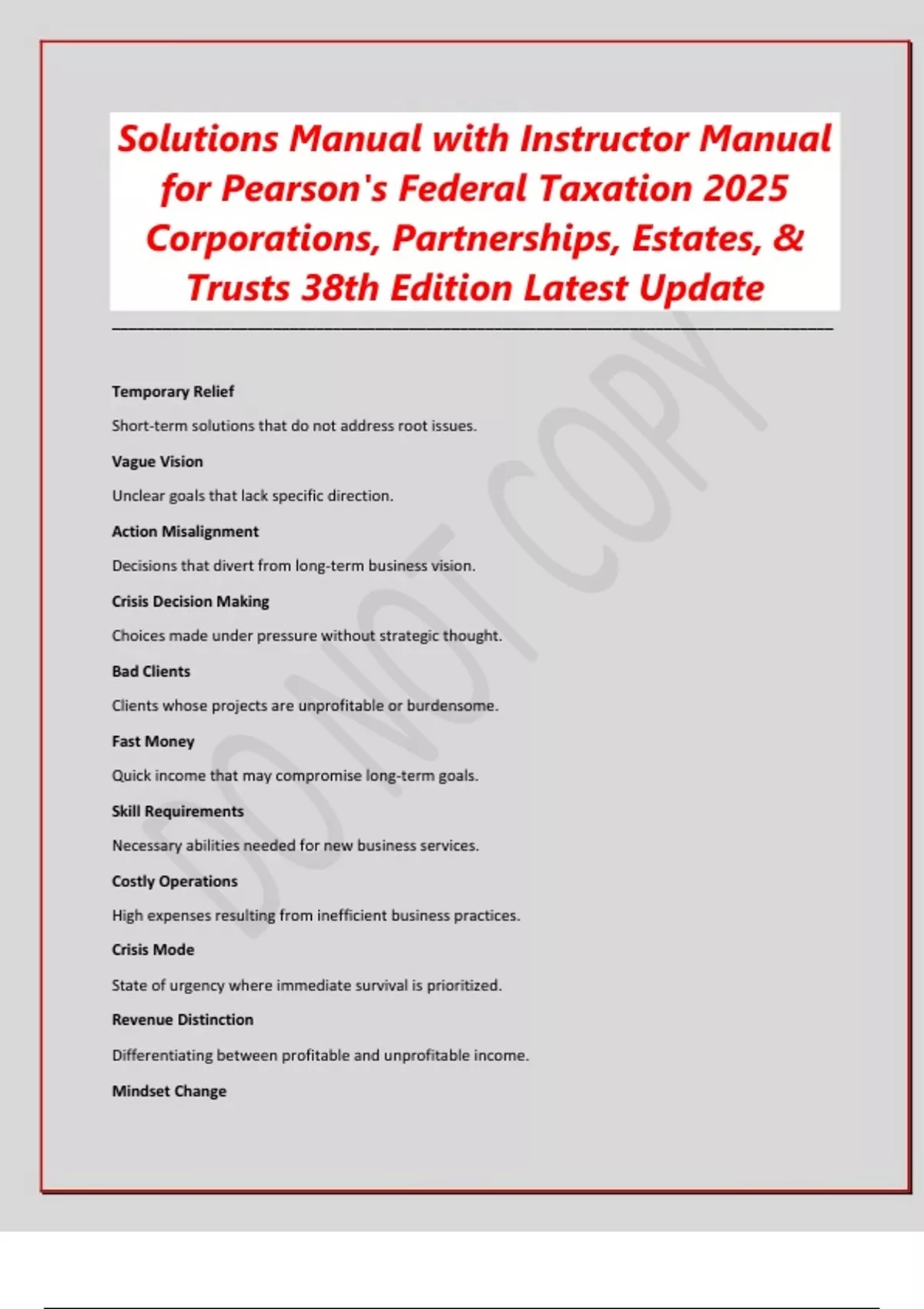 Solutions Manual with Instructor Manual for Pearson's Federal Taxation 2025 Corporations, Partnerships, Estates, & Trusts 38th Edition Latest Update