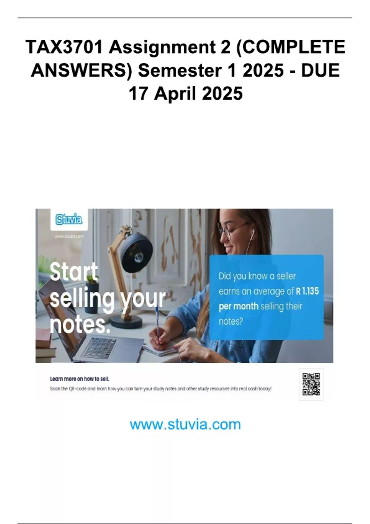 TAX3701 Assignment 2 (COMPLETE ANSWERS) Semester 1 2025 - DUE 17 April 2025