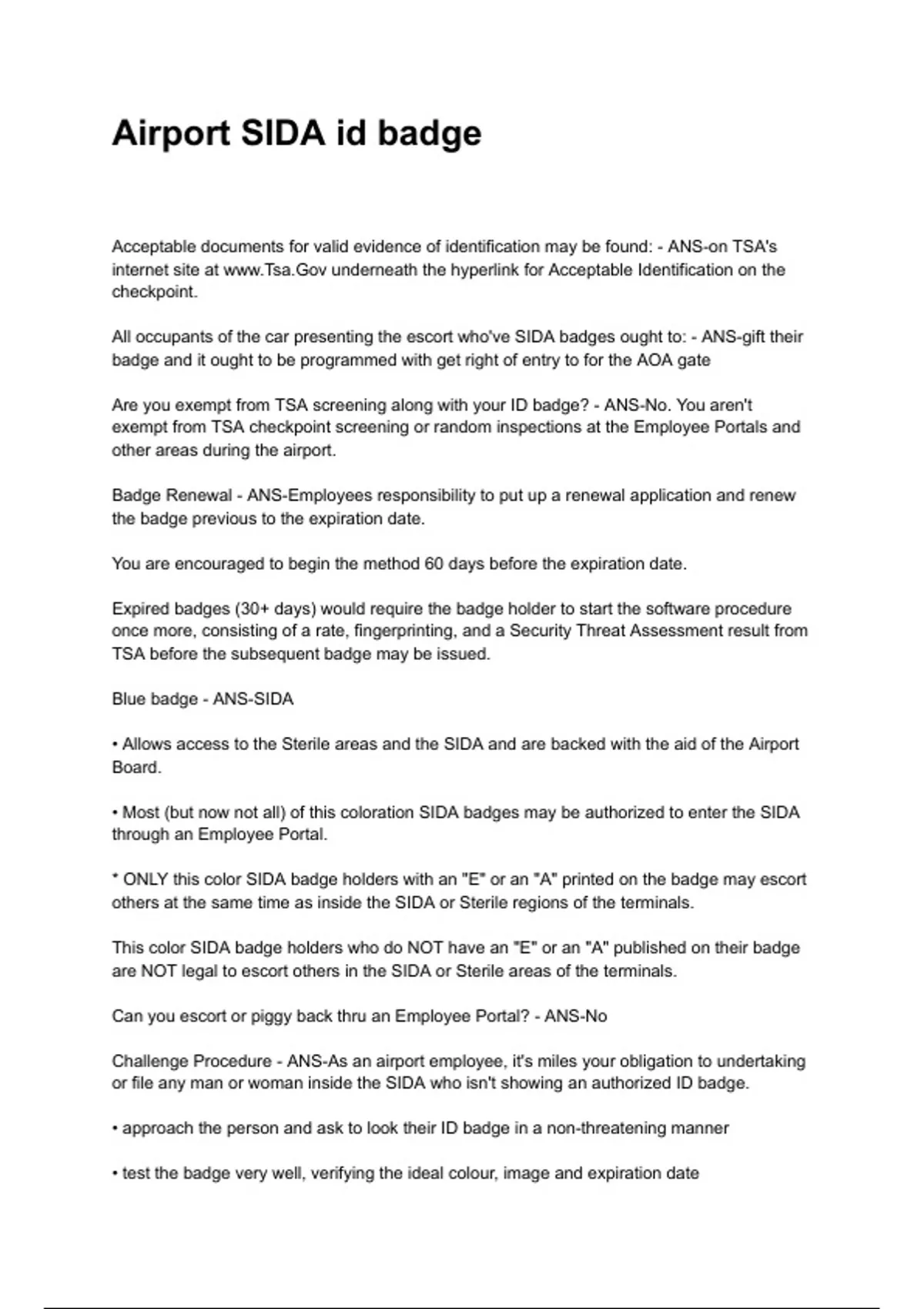 or file any man or woman inside the SIDA who isn't showing an authorized ID badge.