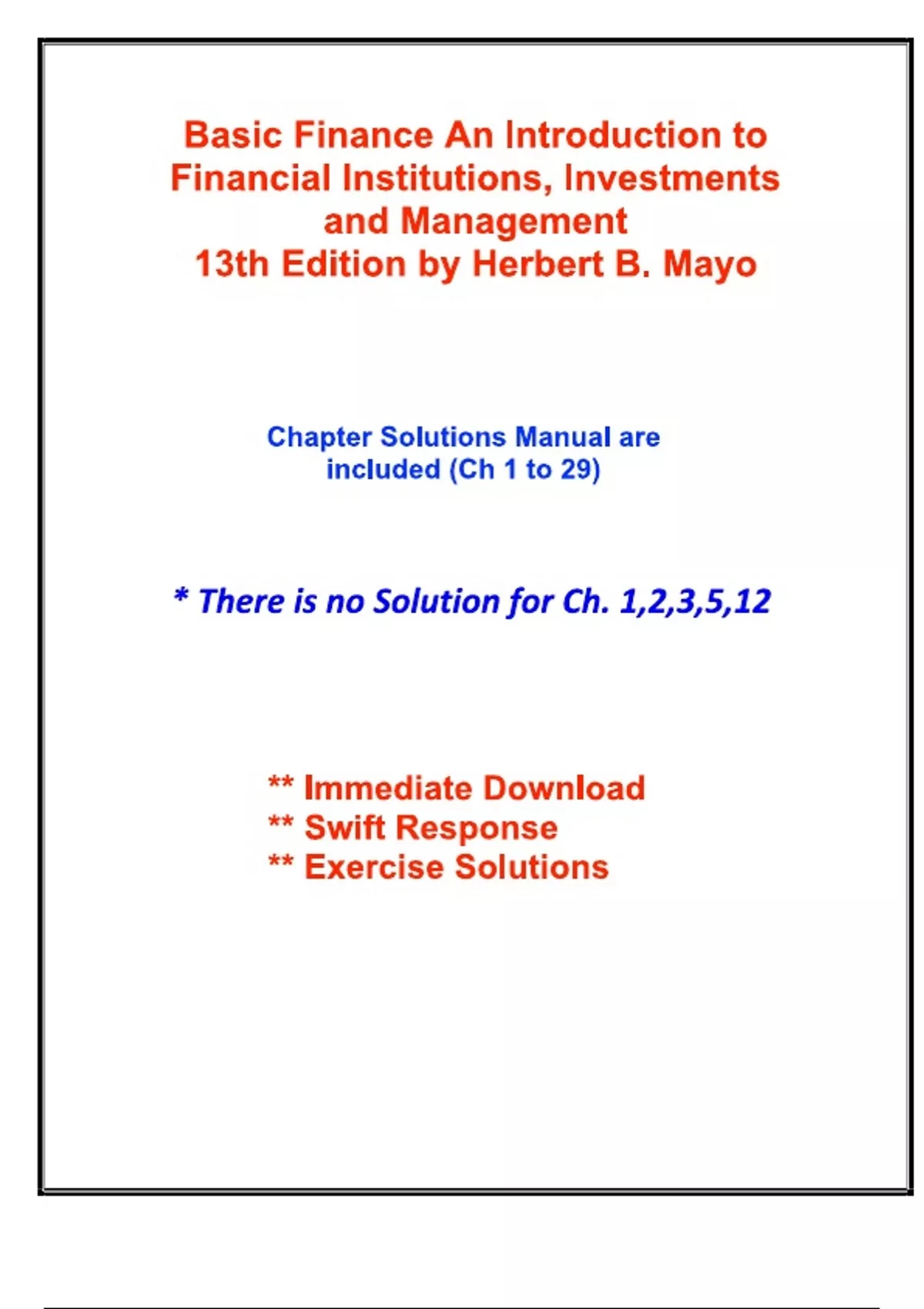Solution Manual for Basic Finance 13th Edition Herbert B. Mayo, Michael J Lavelle, Chapter 1 - 29.