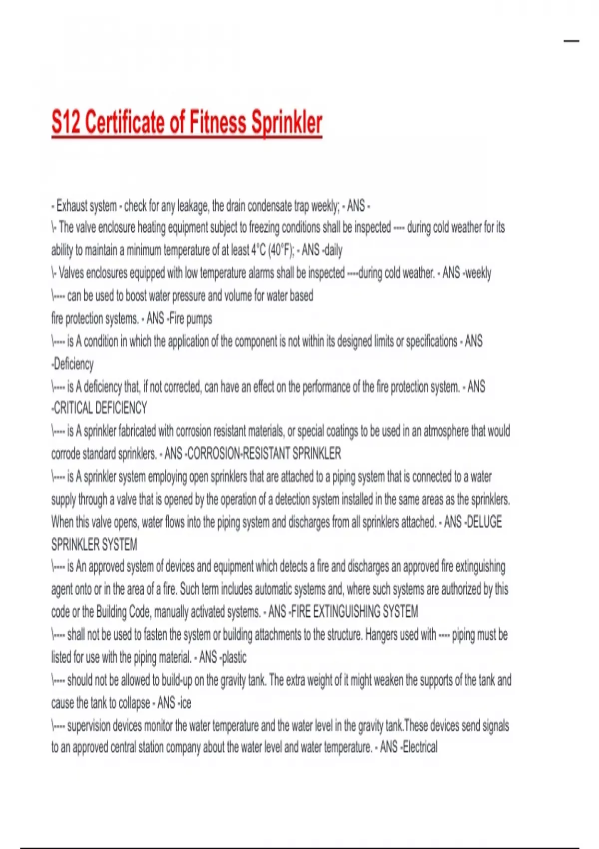 S12 Certificate of Fitness Sprinkler