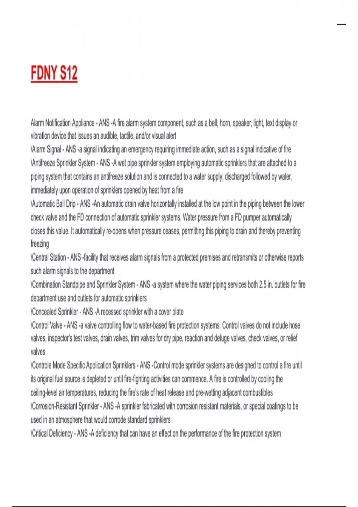 \Critical Deficiency - ANS -A deficiency that can have an effect on the performance of the fire protection system