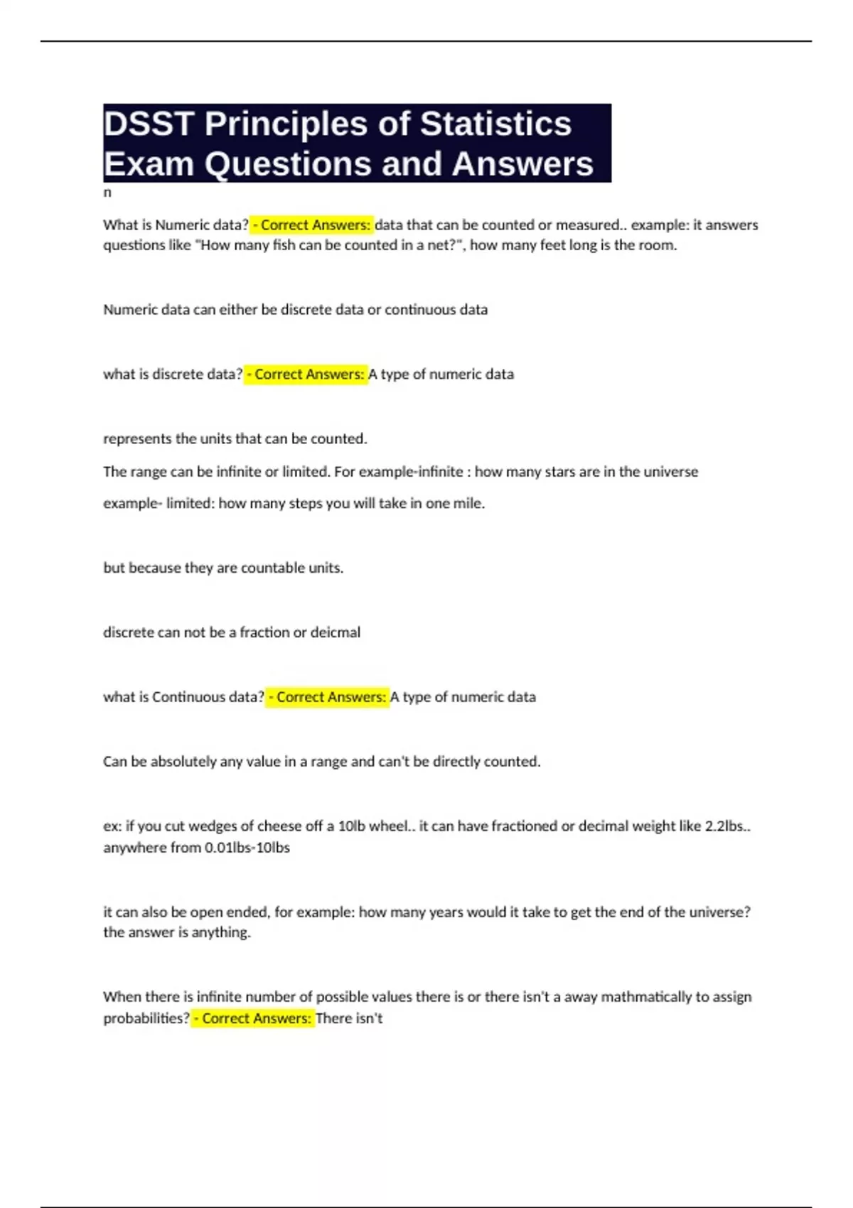 What is a median? - Correct Answers: A descriptive statistic that is resistant to extreme values is the