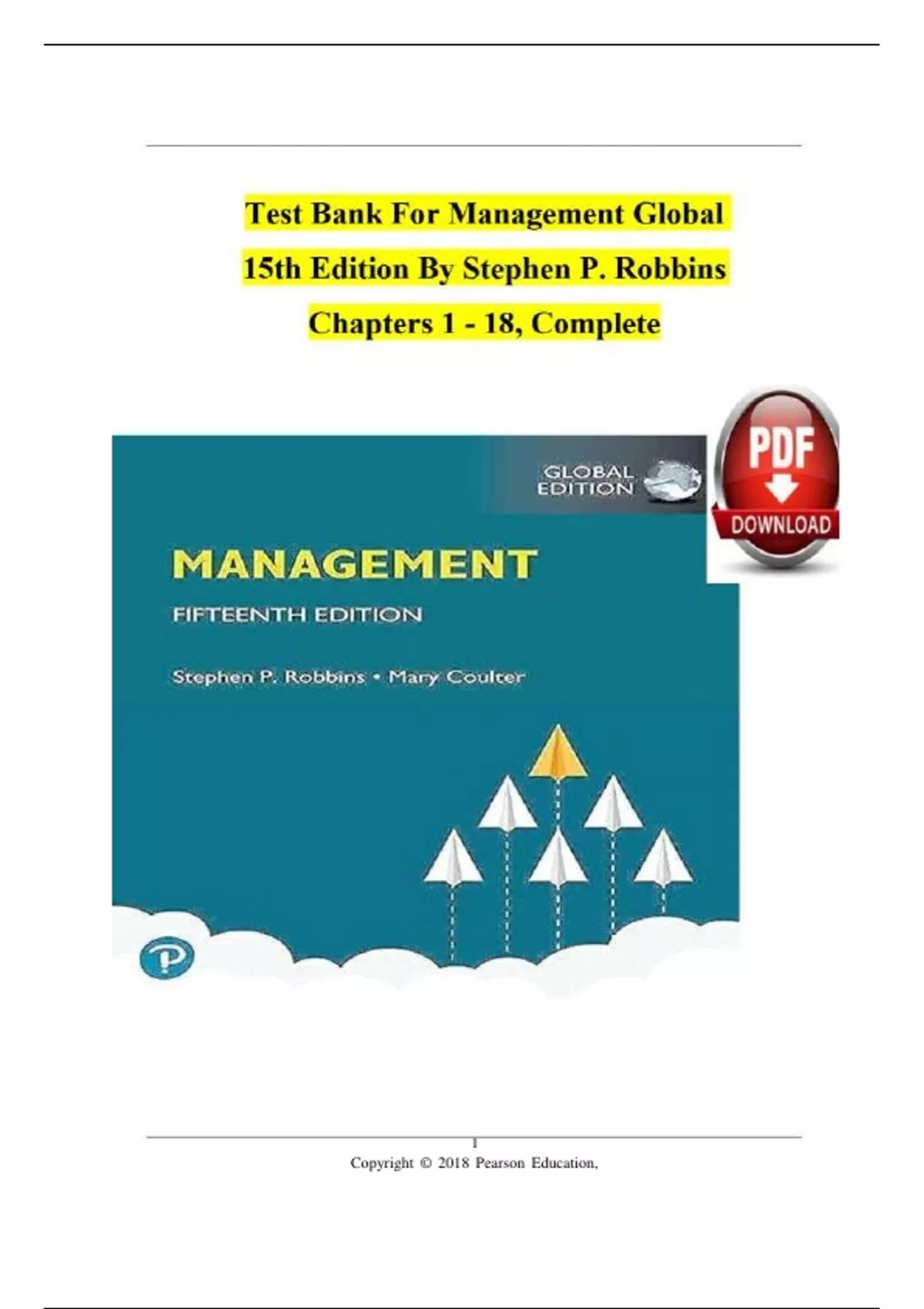 Test Bank for Management Global, 15th Edition by Stephen P. Robbins, Verified Chapters 1 - 18, Complete Newest Version