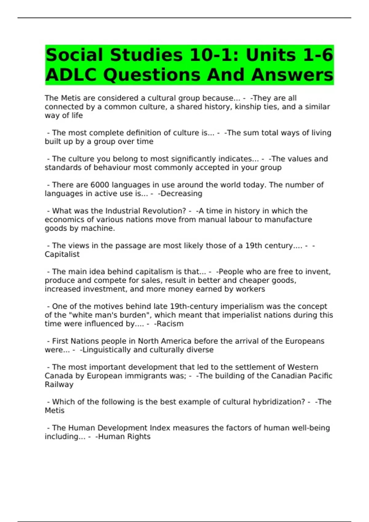 Social Studies 10-1: Units 1-6
