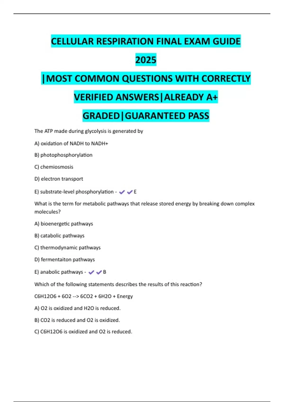 CELLULAR RESPIRATION EXAM GUIDE 2025 PACKAGE