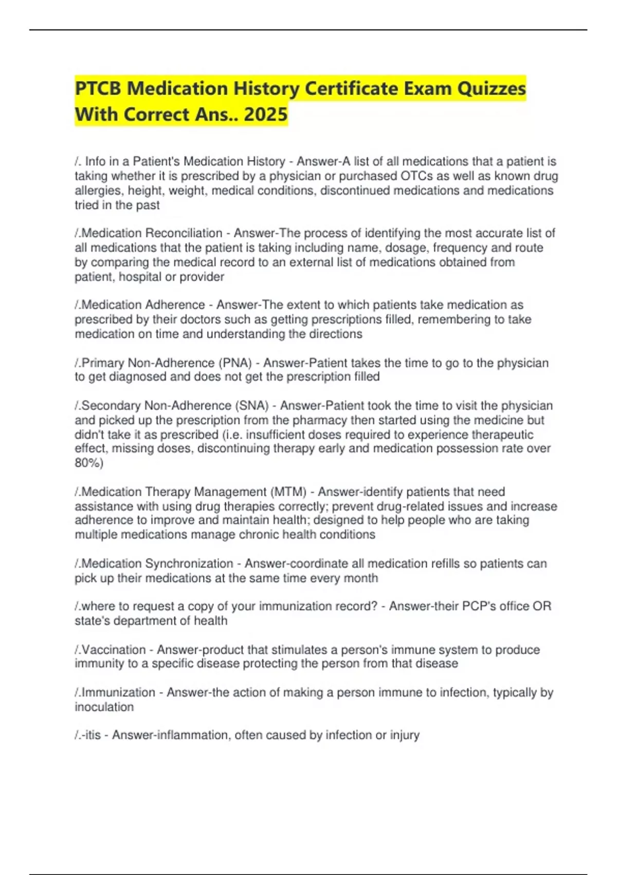 /. Info in a Patient's Medication History - Answer-A list of all medications that a patient is