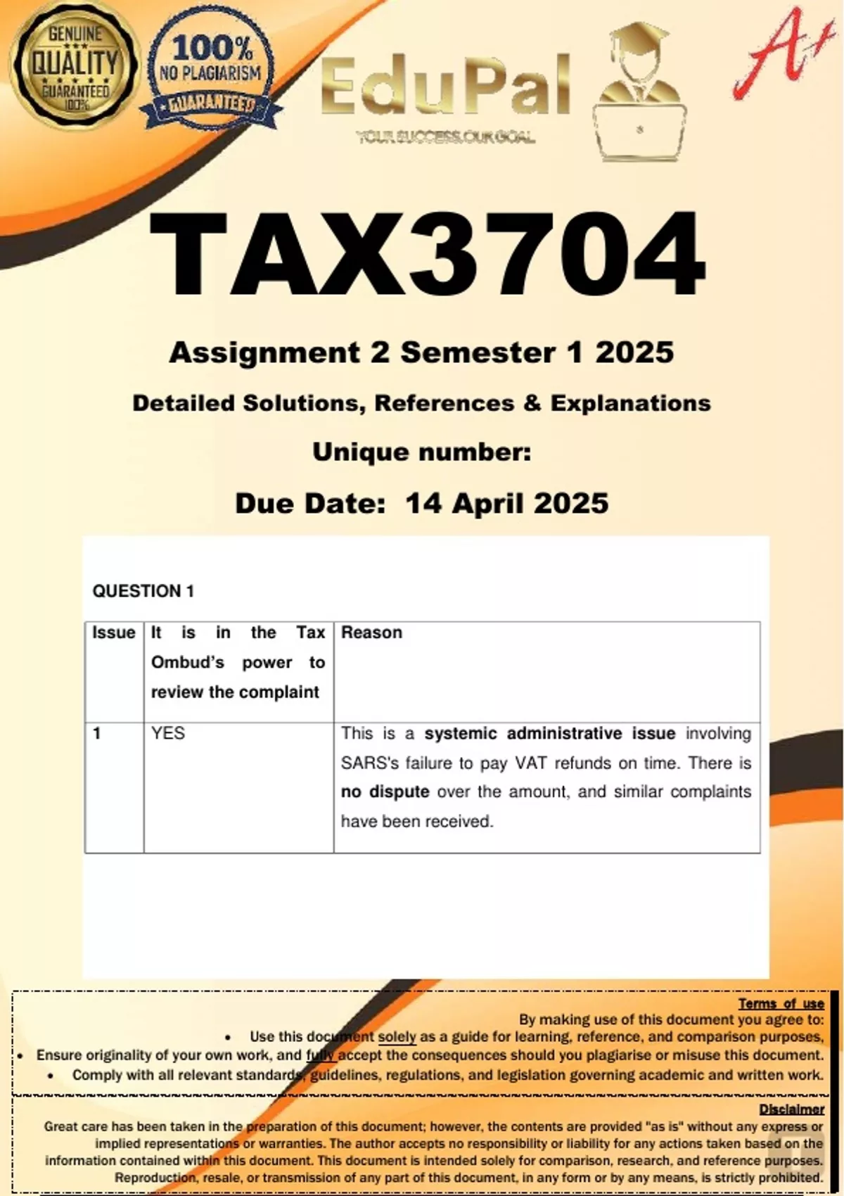 Due Date: 14 April 2025