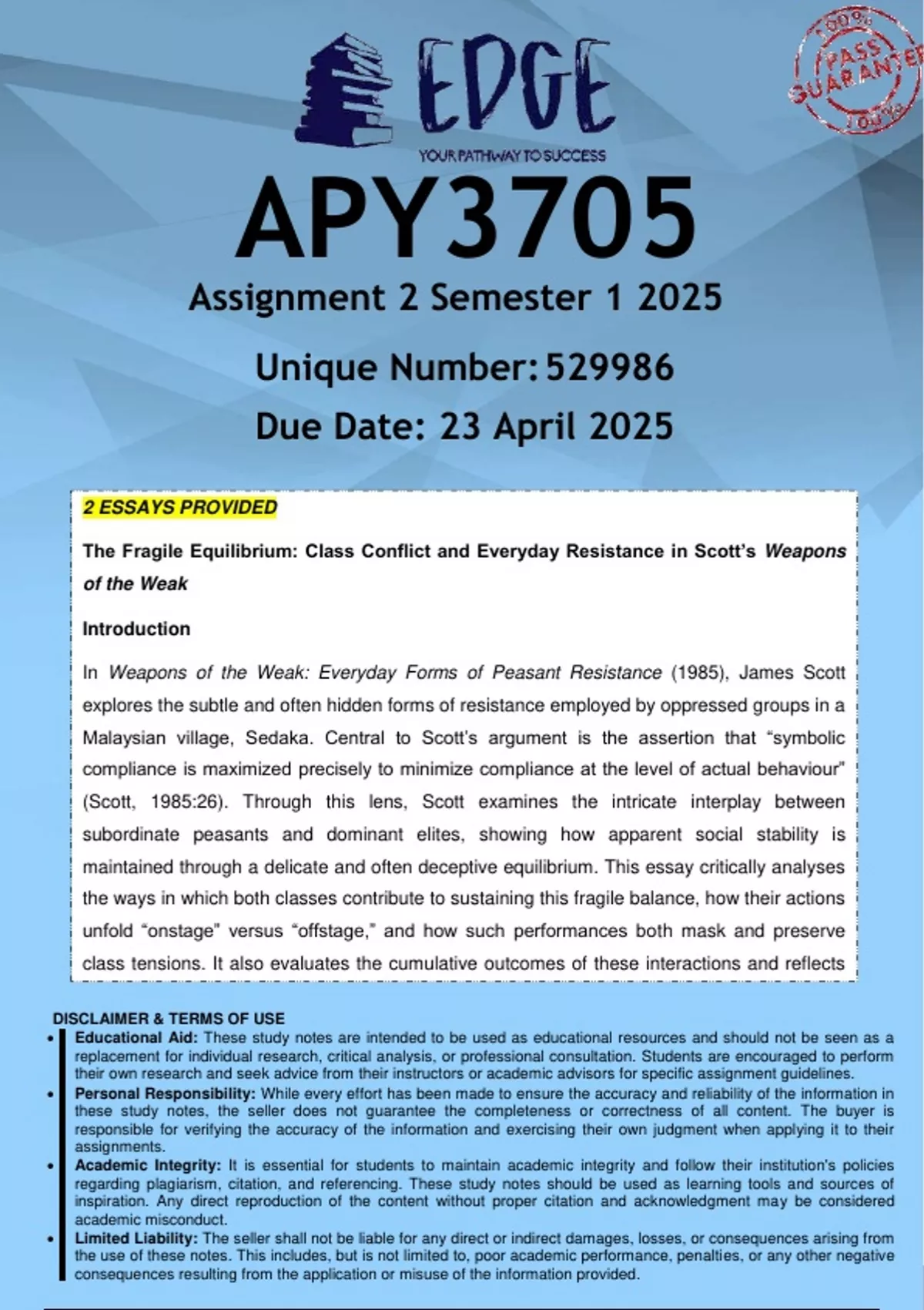 This document contains workings, explanations and solutions to the APY3705 Assignment 2 (QUALITY ANSWERS) Semester 1 2025. For assistance whats-app us on 0.6.8..8.1.2..0.9.3.4...