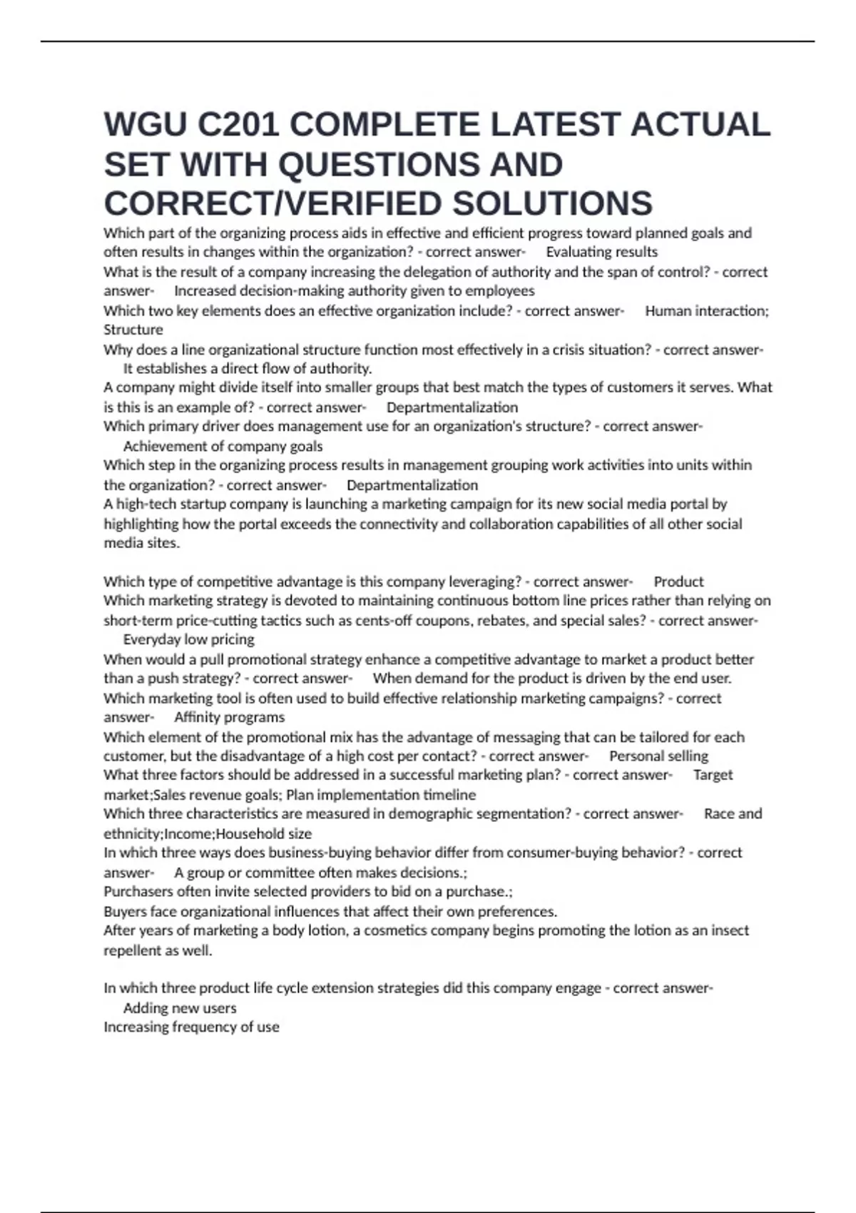 WGU C201 COMPLETE LATEST ACTUAL SET WITH QUESTIONS AND CORRECT/VERIFIED SOLUTIONS