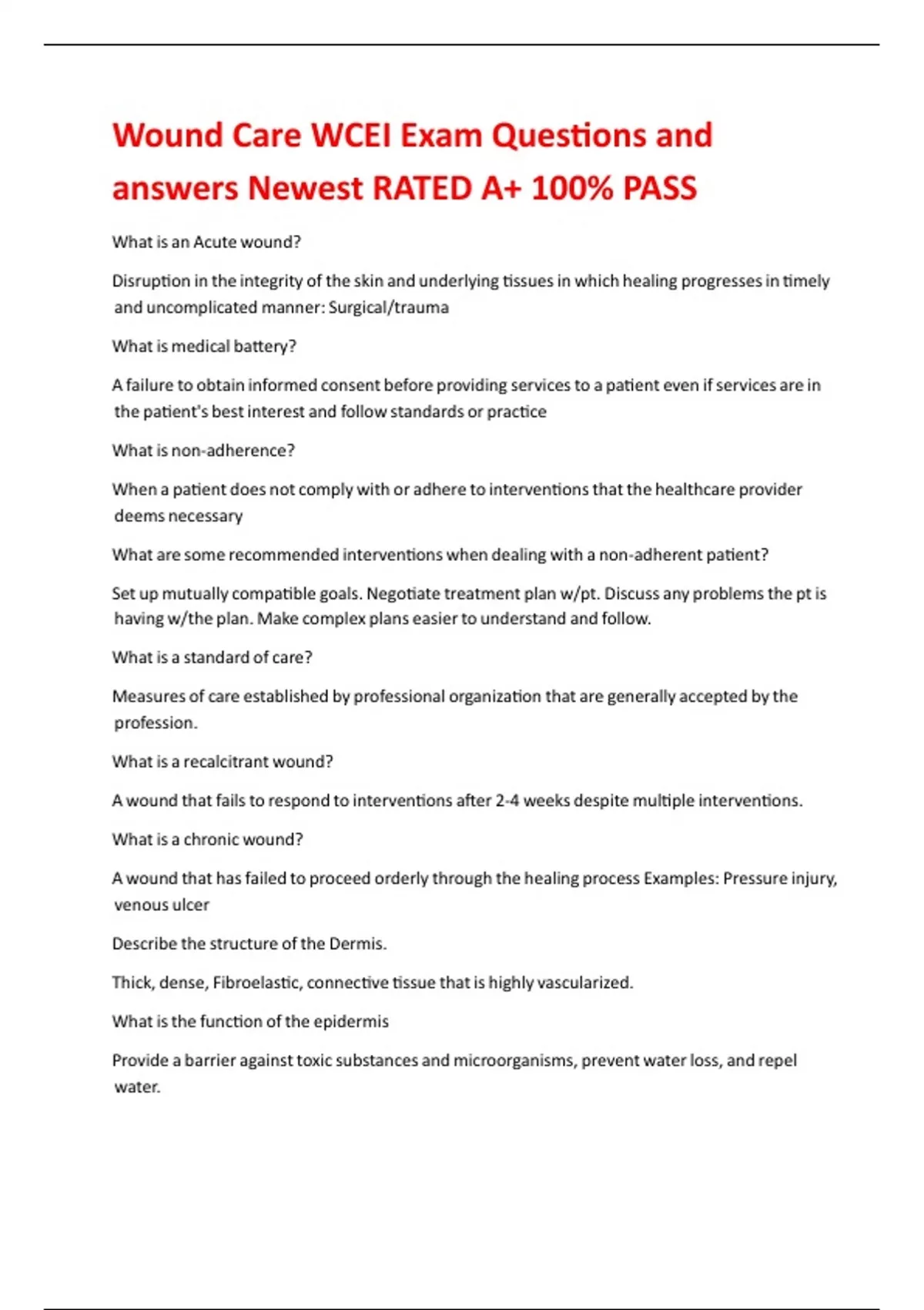 Wound Care WCEI Exam Questions and answers Newest RATED A+ 100% PASSWound Care WCEI Exam Questions and answers Newest RATED A+ 100% PASSWound Care WCEI Exam Questions and answers Newest RATED A+ 100% PASSWound Care WCEI Exam Questions and answers Newest RATED A+ 100% PASSWound Care WCEI Exam Questions and answers Newest RATED A+ 100% PASS