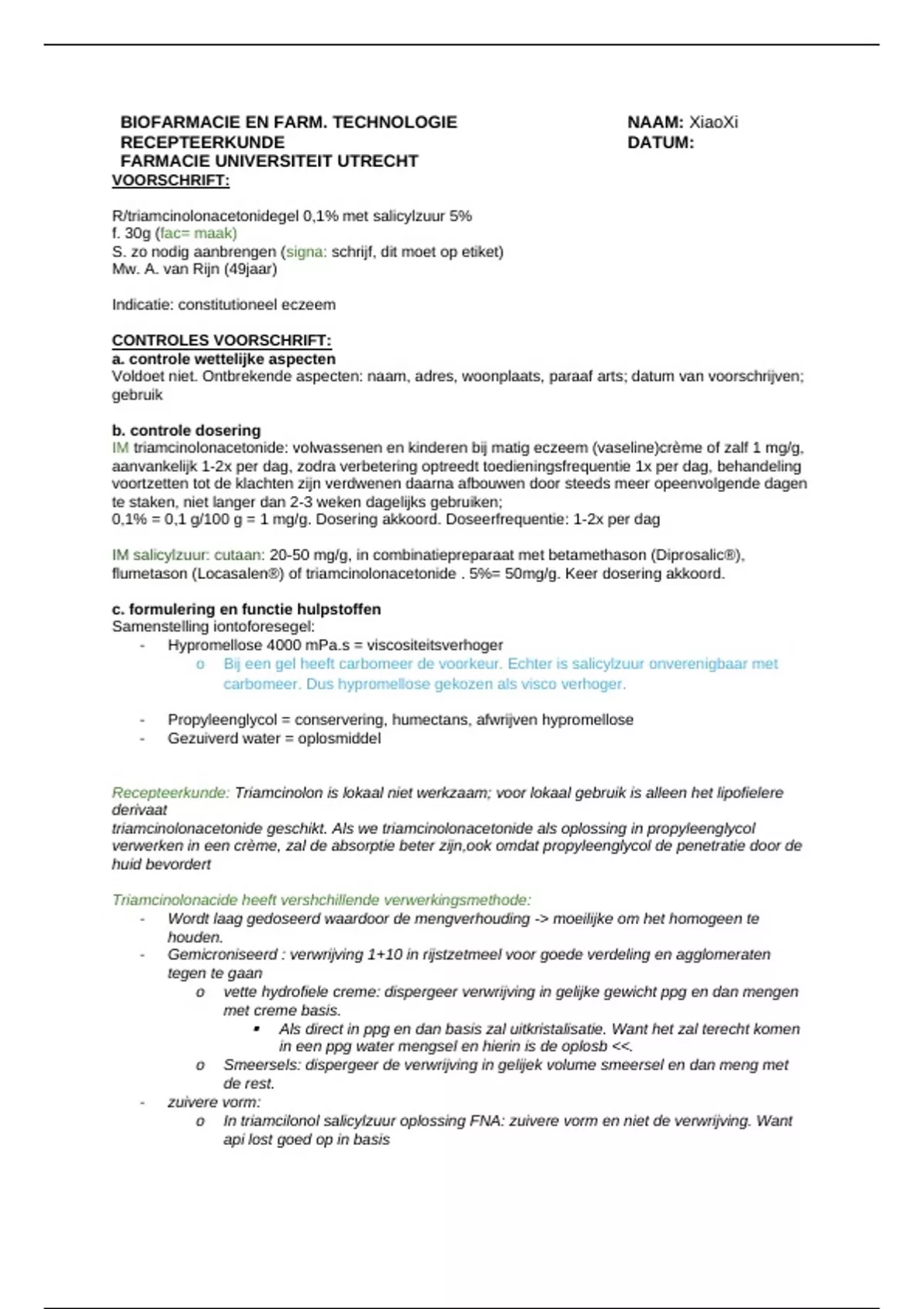 Recepteerkunde: Triamcinolon is lokaal niet werkzaam; voor lokaal gebruik is alleen het lipofielere