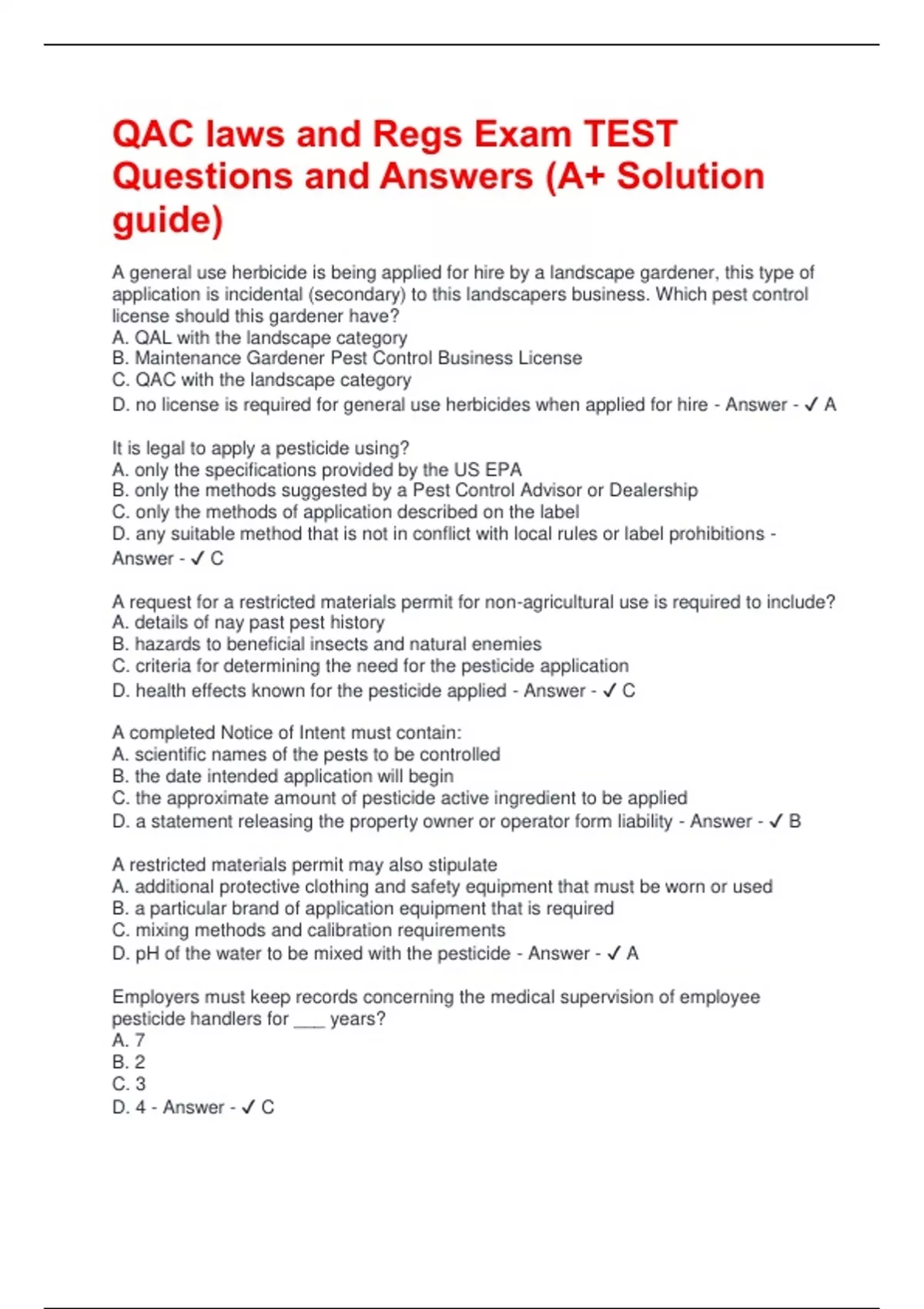 D. no license is required for general use herbicides when applied for hire - Answer - ✔ A