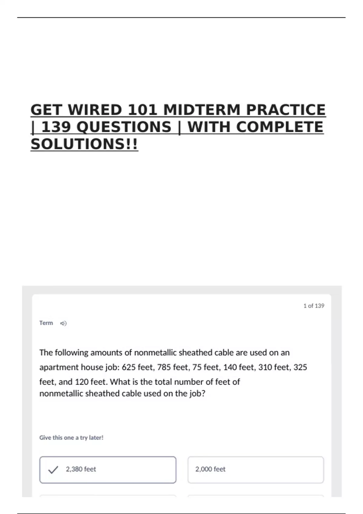 GET WIRED 101 MIDTERM PRACTICE | 139 QUESTIONS | WITH COMPLETE SOLUTIONS!!
